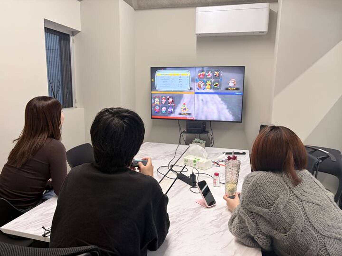 写真:お昼休みにマリオカートをする社員さんたち