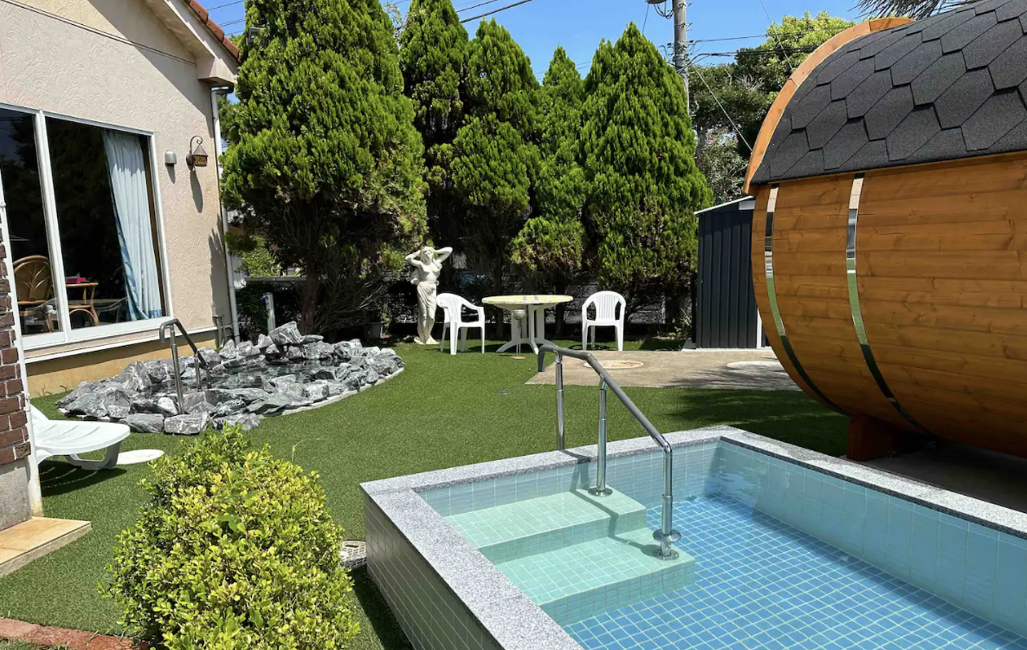 サウナや小さめのプール(水風呂?)がある、とても可愛いヴィラでした!