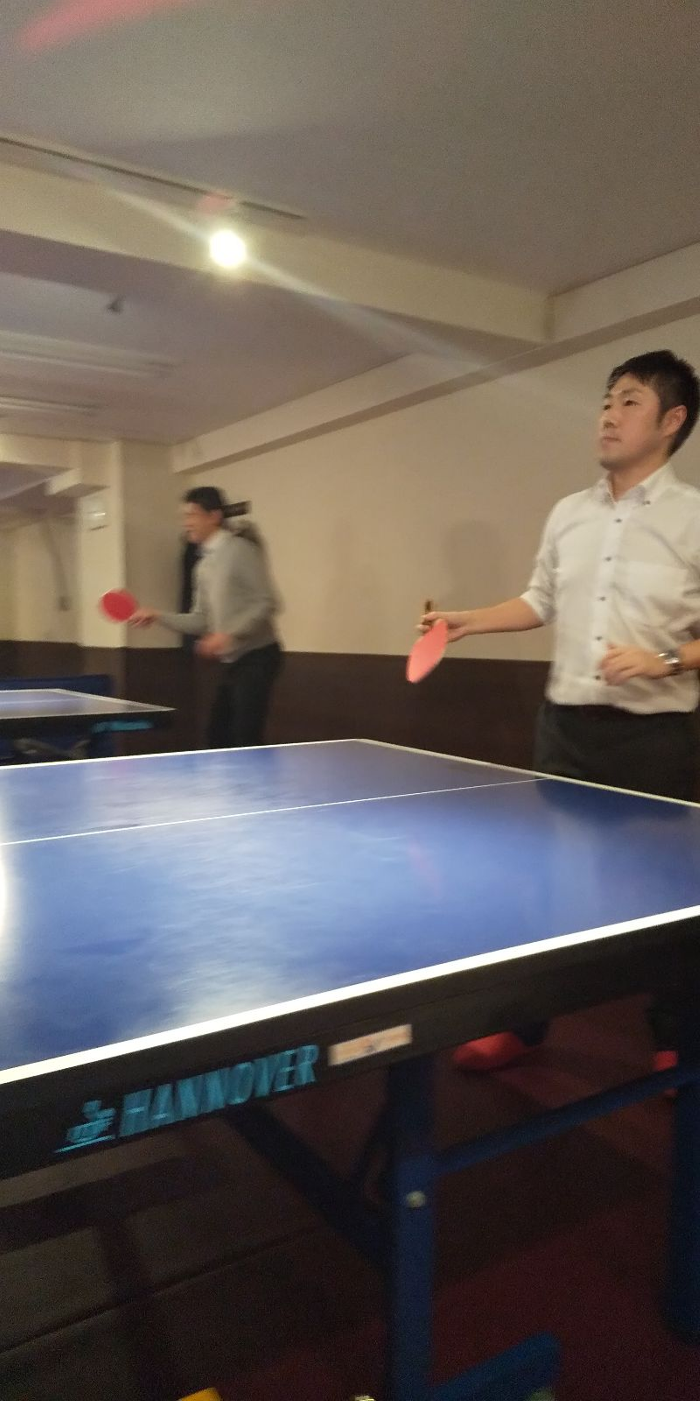 尚、弊社取締役は昔から卓球に精通しており、打倒取締役ということで勝負を試 みるも・・・。 ハンデとして利き手とは逆で勝負をしても相手にならず・・・。