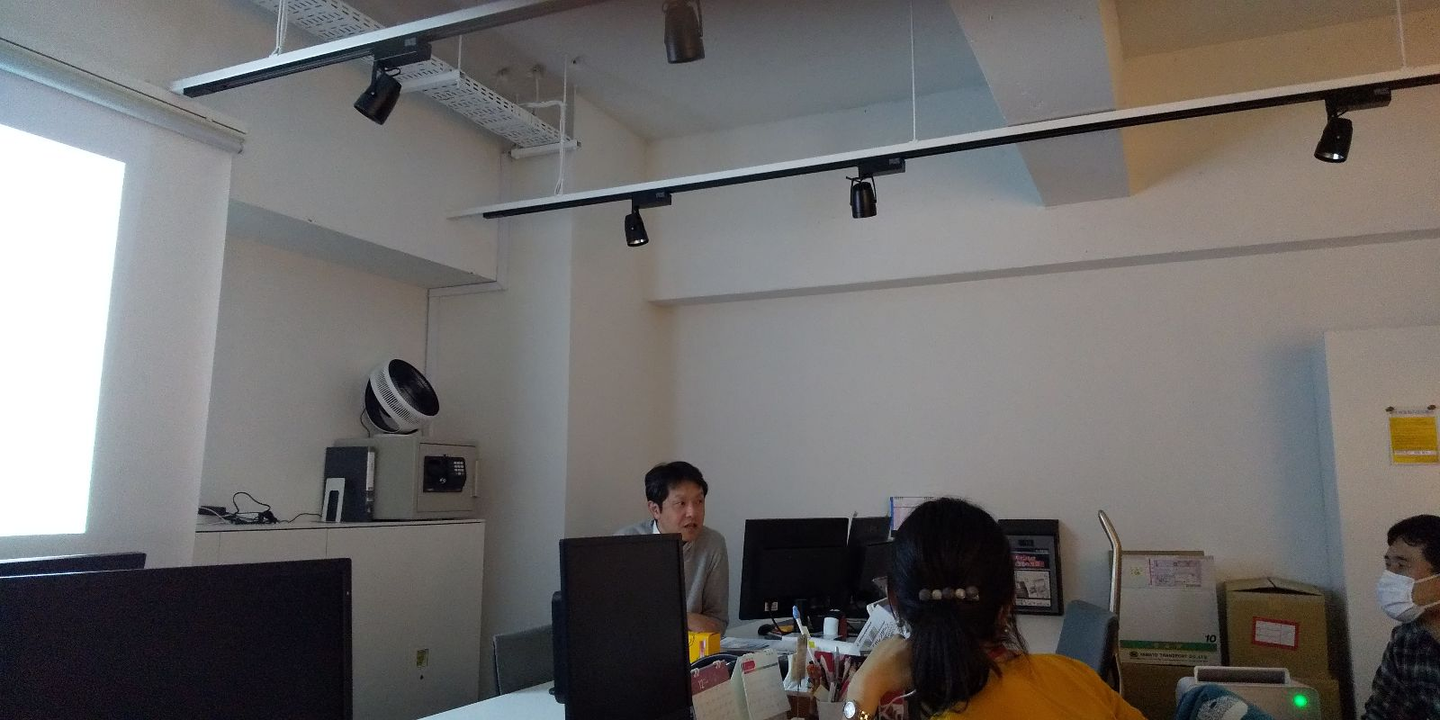 まずは、全社会の様子から。 毎月一度全社員が集まり、事業報告・連絡事項等を共有しています。