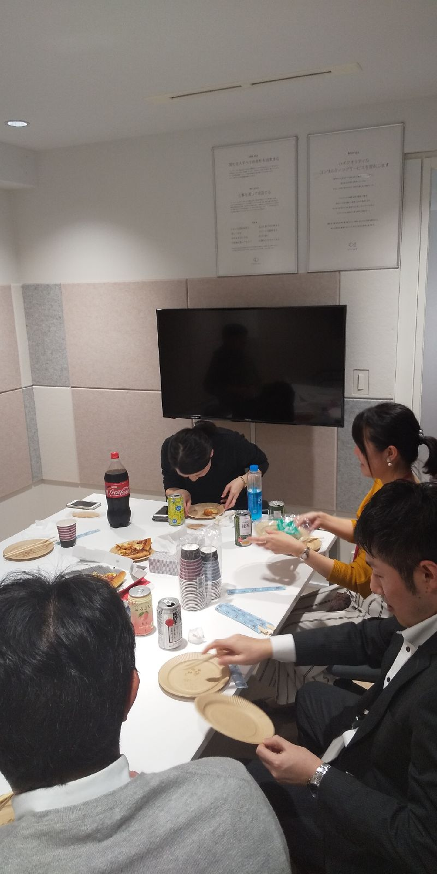 を企画しました。腹が減っては戦ができぬ!ということで、まずはみんなで腹ごしらえ 。 社内で楽しく和気あいあいと軽食をとり、いざ決戦へ!!
