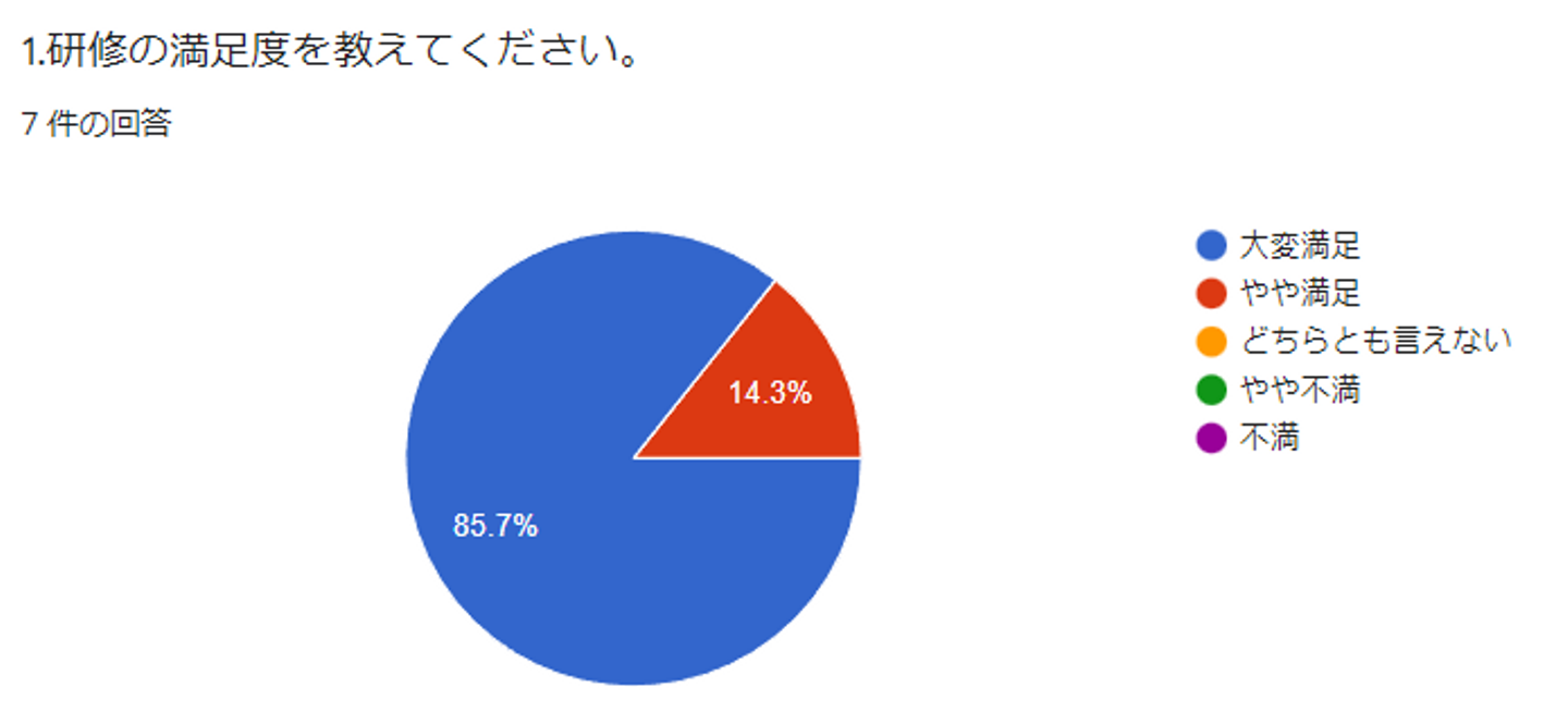 研修後のアンケート結果の満足度は100%!