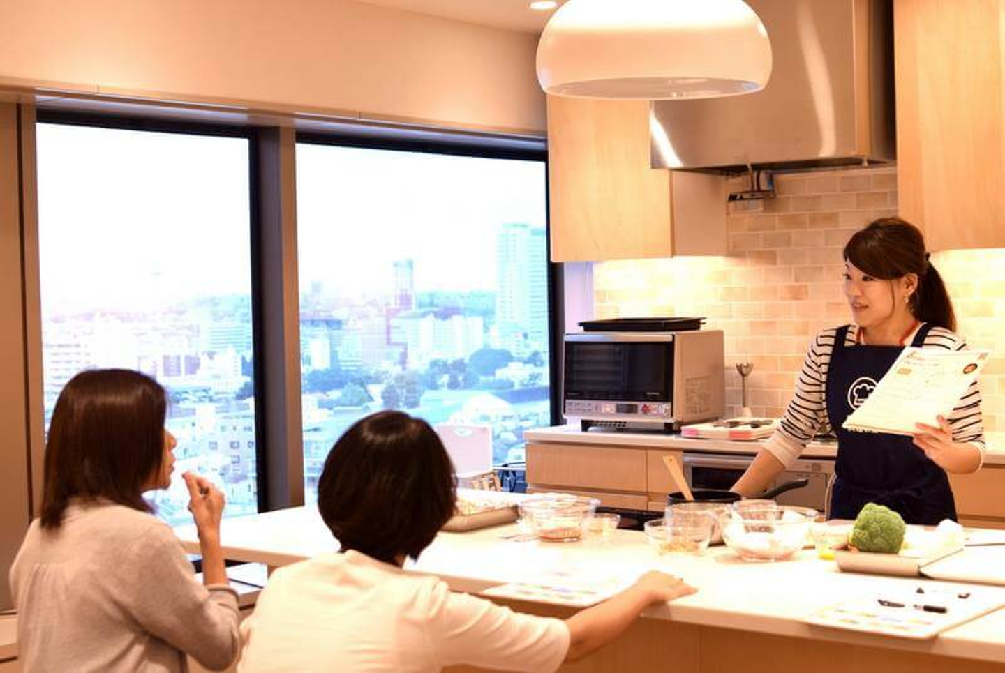 クックパッド料理教室とは、クックパッドが認定した230名ほどの講師が、自宅や飲食店で展開するフランチャイズ型のお料理教室です。クックパッド料理教室で働く社員は、230名の講師の方々に向けて教室運営のサポートや、予約システムの構築をしています。その他にも「クックパッド恵比寿オフィス教室」の運営を行っており、普段社員が働いている恵比寿ガーデンプレイスのオフィスにて、実際のレッスンを運営しています。