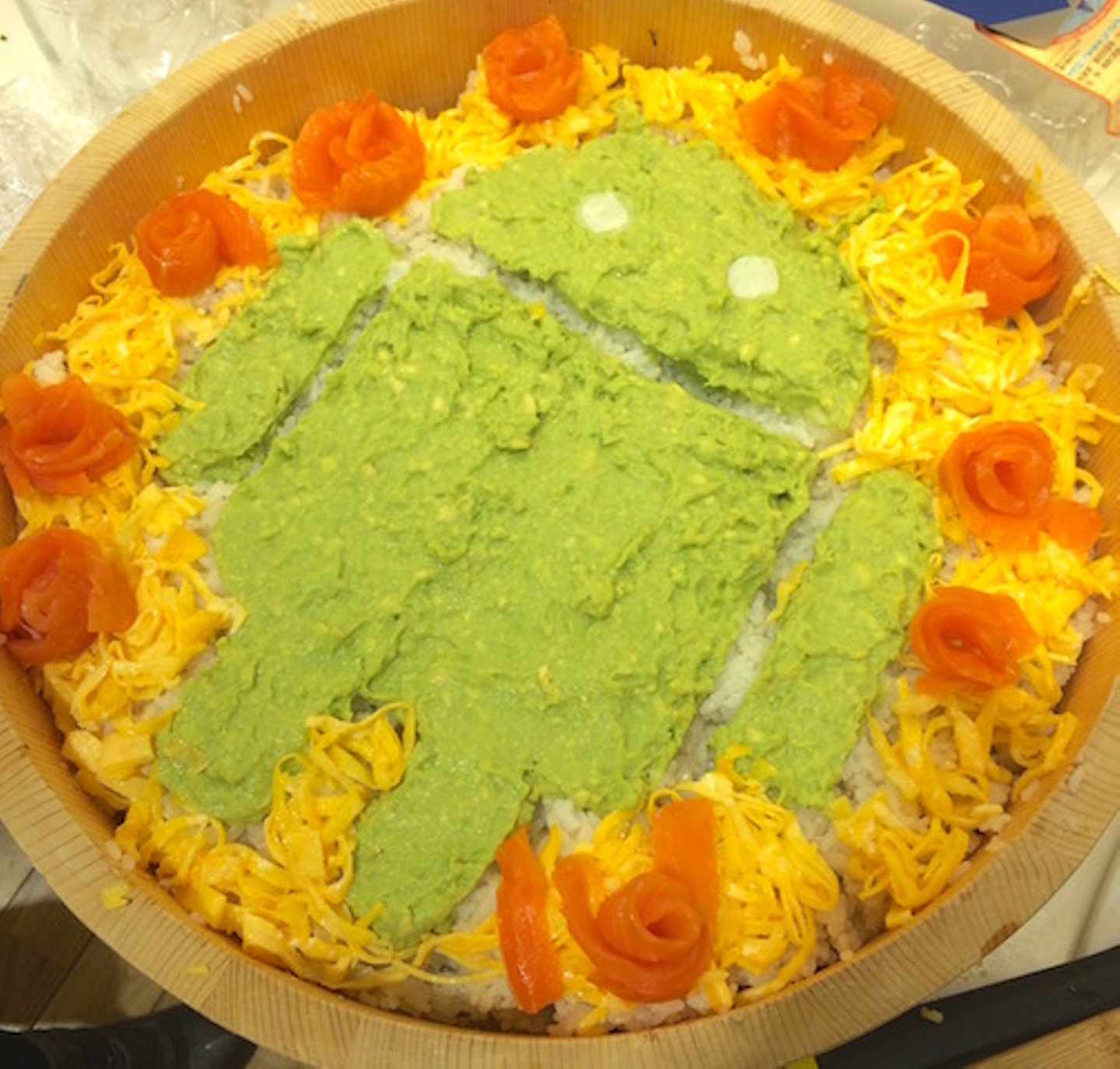 認定時には、全社でお祝いとしてドロイド君のちらし寿司を作りました(もちろん社員のお手製です。)今回の「ベストシェアアプリ部門」受賞ではどのようなお祝いをするのか今から楽しみですね。