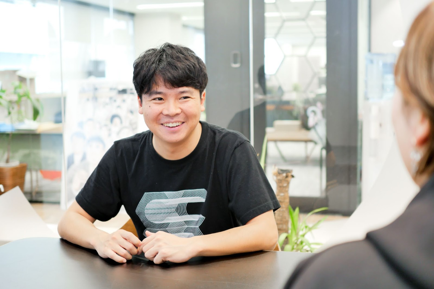 面接ではCSの前田さんと野沢さんにお会いしたんですけど、「若い会社だな」って印象がありました。30歳手前の前田さんがトップ張ってる、若い謎の集団、ってイメージ。僕は若いうちからマネジメントも経験したいと思っていたので、組織拡大フェーズですし、理想ポイントの①〜③を満たしているので、これから挑戦できそうな環境だなと思いましたね。