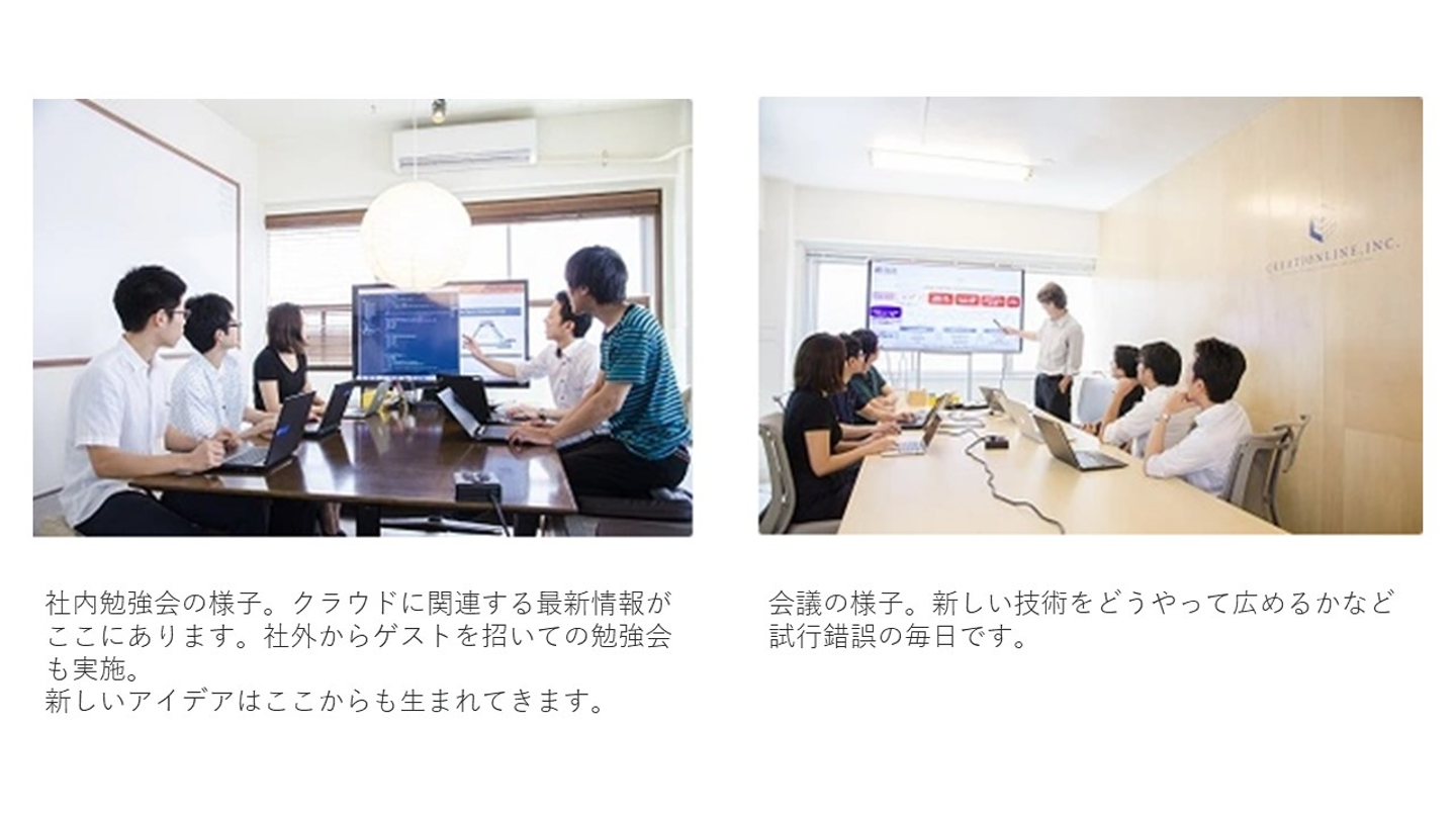 人間にしかできない創造(Creation)により、未来を導く(Line)こと。 それが、わたしたちの使命であり、目指すべきところです。技術を極めていくことに飽くなき探求心を持ちつづける。いま、わたしたちの主軸であるクラウドも、ひとつの通過点だと考えています。