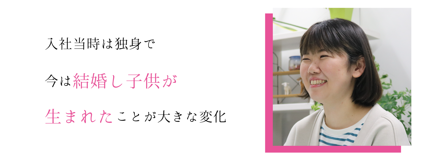一つは個人的なことになるのですが、入社当時は独身で今は結婚し子供が生まれたことが大きな変化になります。また、社内の先輩ママさんから子供服のお下がりをいただいたり、子育てのアドバイスをしていただけたので、産休・育休を取得することにあまり不安はありませんでした。入社当時から何かあれば手を伸ばしてくれる人が多いという印象でしたが、自分が産休・育休を取得する当事者になった時に会社はもちろん、まわりの人達が支えてくれるのを感じたので、良い意味で印象は変わっていないです。