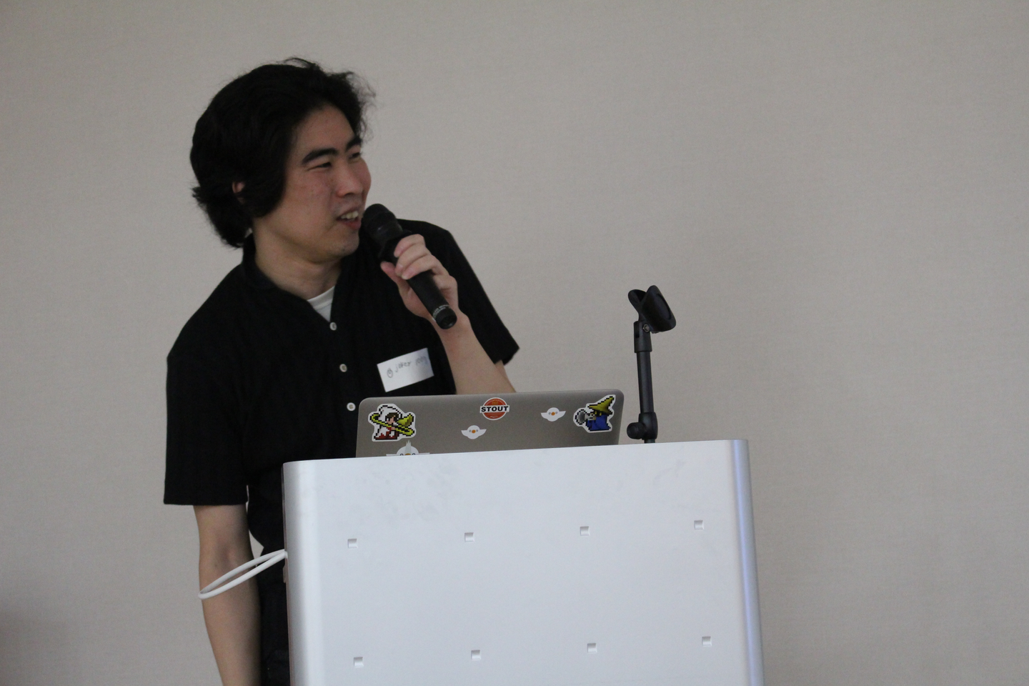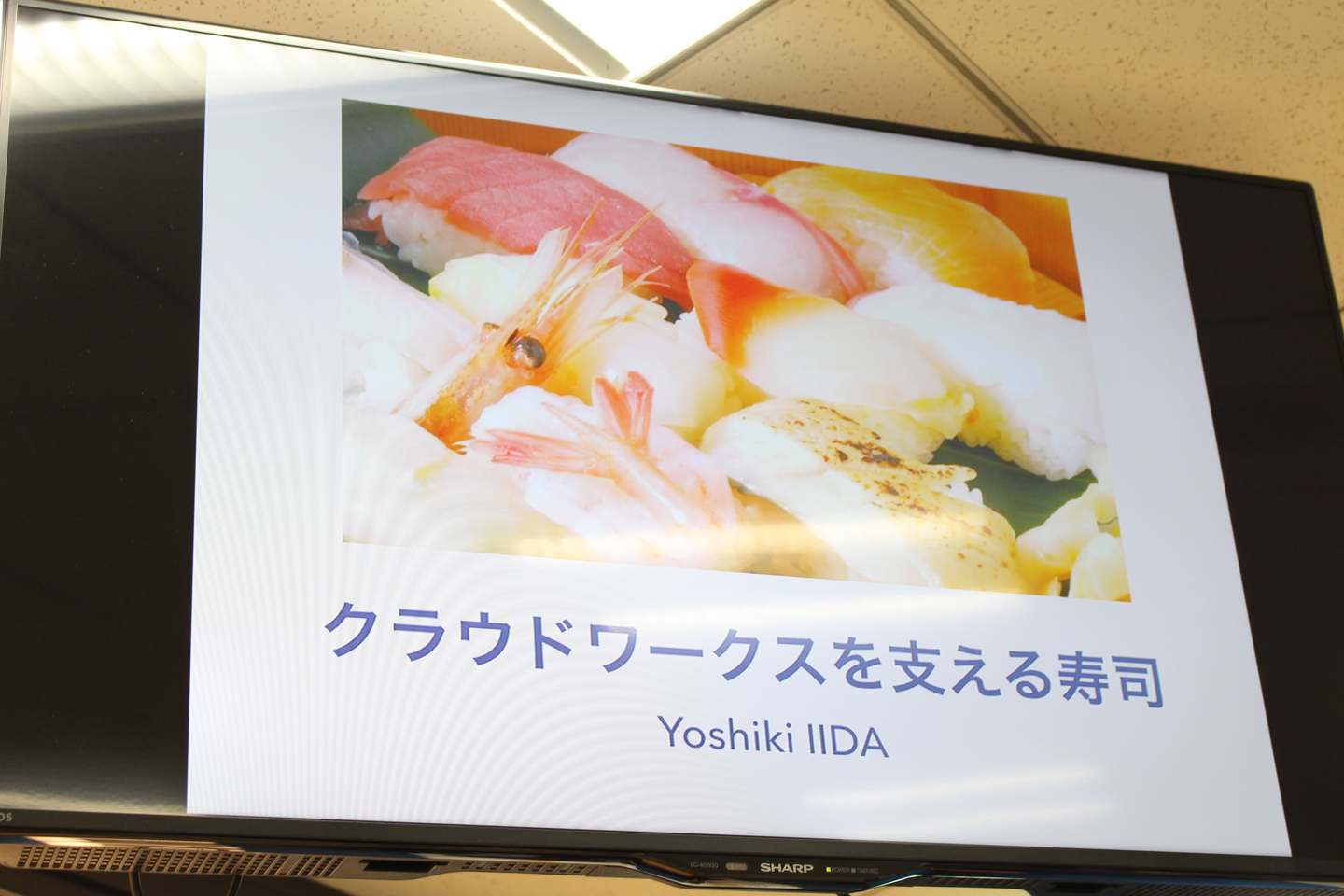 また懇親会のLT会では、弊社で行っているエンジニア寿司ランチの裏側を飯田が(「寿司ランチ券」を配布させて頂きました!)、