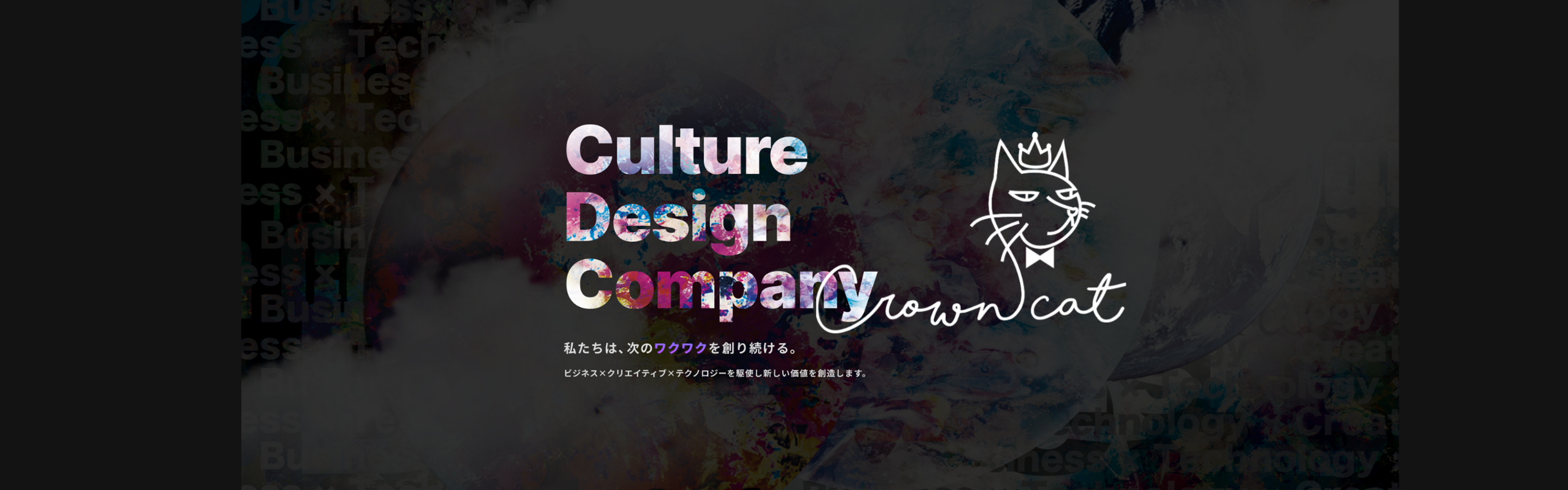 私たちは、次の文化を創り続ける「Culture Design Company」として、ビジネス×クリエイティブ×テクノロジーを駆使し、新しい価値を創造しています。