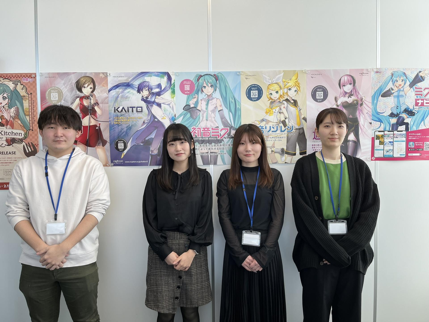 ・加藤:ライセンスビジネスAチーム国内ライセンスBユニット所属。関東出身で入社をきっかけに北海道へ移住。SNOW MIKU 2024ではビジュアルやミュージアム企画などを担当。その他最近手掛けた企画はミク焼き、ホテルとのコラボルームなど。