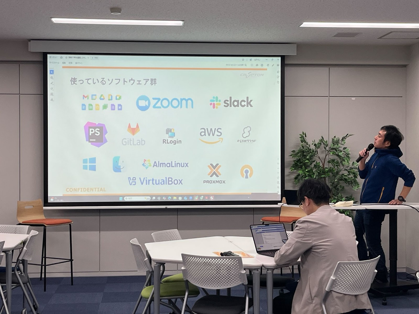 講義の中では、林が当社のサーバー運用やインフラ構築等で使用しているクラウド技術についても紹介いたしました。AWS(Amazon Web Services)や、国内企業のさくらのクラウド等です。
