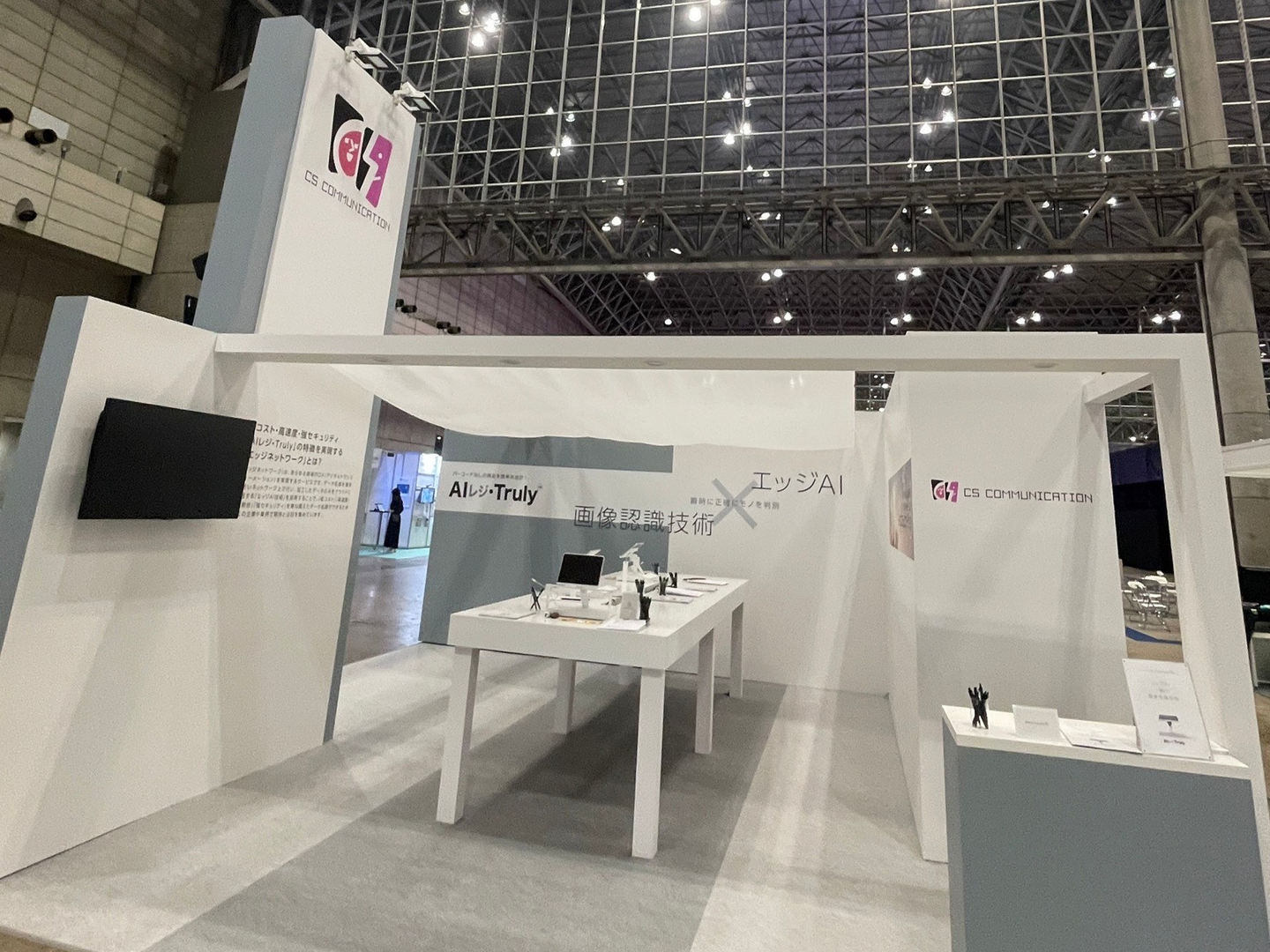 シーエスコミュニケーションの製品「AIレジ・Truly」のお披露目と同時に、弊社がAIを現場に実装する企業であることを、多くのステークホルダーにお伝えすることが出展の目的でした。