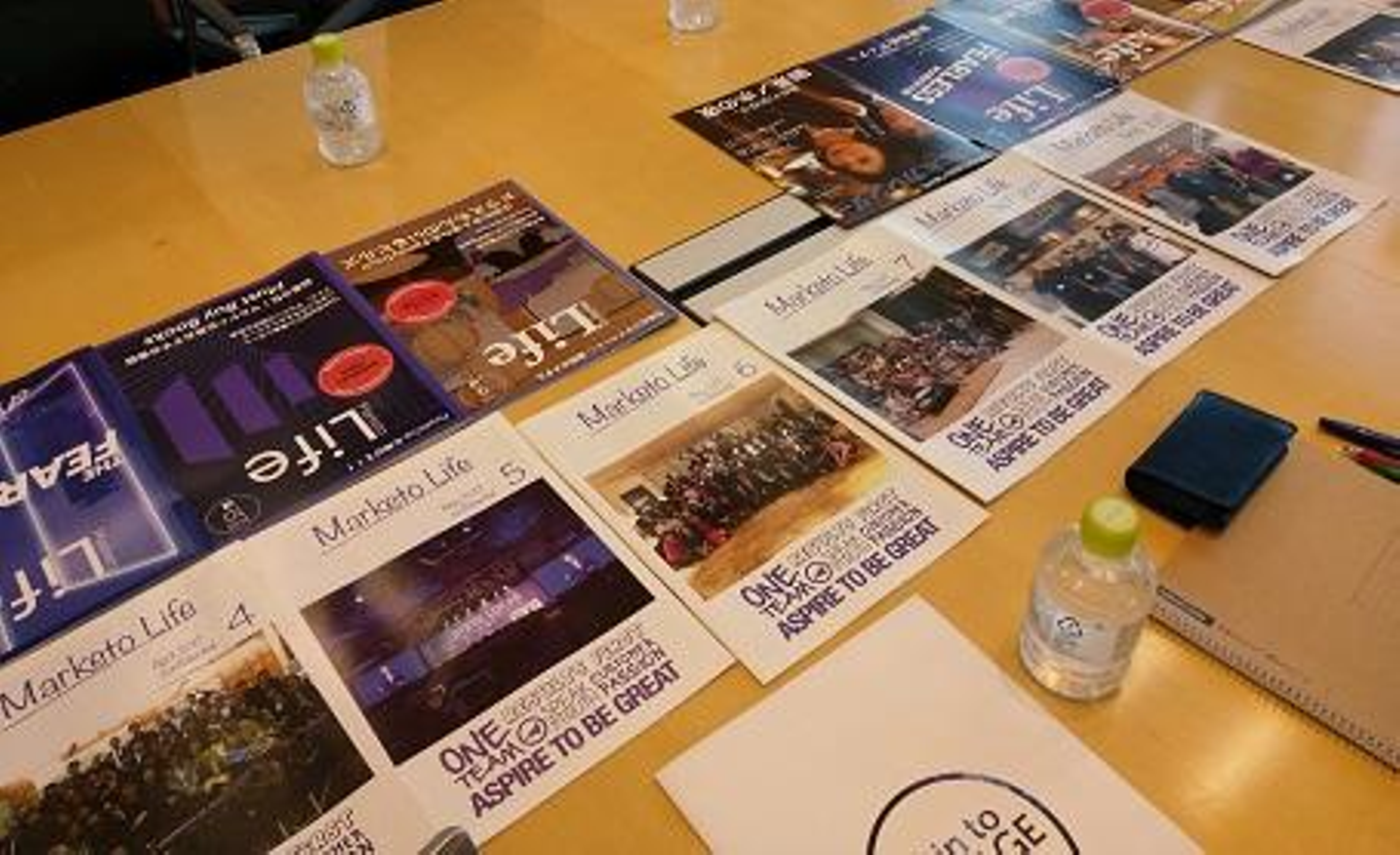 マルケトではかなり本気で社内報を作っている。我々は何者で、何を目指しているのか、最近のトピック、お客さんの声などを載せて配る。社員がこれを持ち帰り、家庭で見せる。「うちの会社ってこんな感じでさ、こういう事を目指して仕事しているんだよ...」なんて会話がなされる。人に語る、教えるのが最も身になるわけで、話しているうちに自分の中にも会社の経営方針、ビジョンが落ちてくるのだろう。