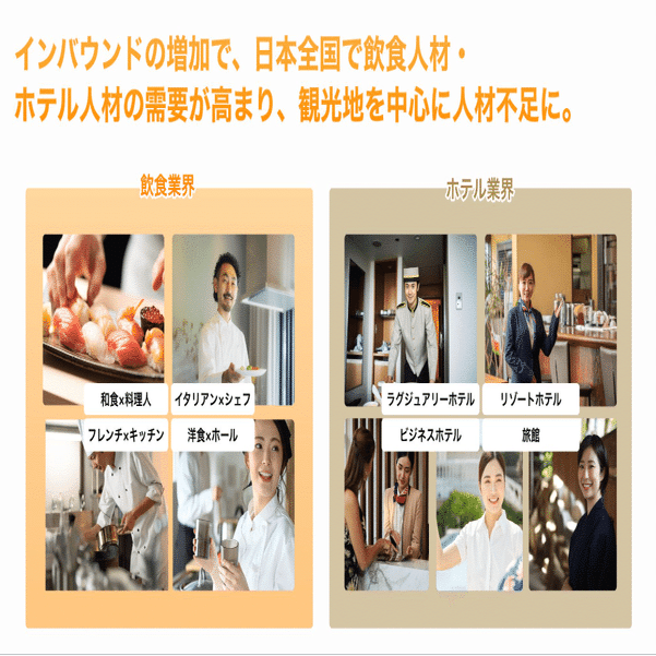 飲食・ホテル業界は、日本経済を支える重要な成長産業であり、日本の文化や魅力を世界に発信する最前線です。しかし、慢性的な人材不足という構造的な課題を抱えていました。
