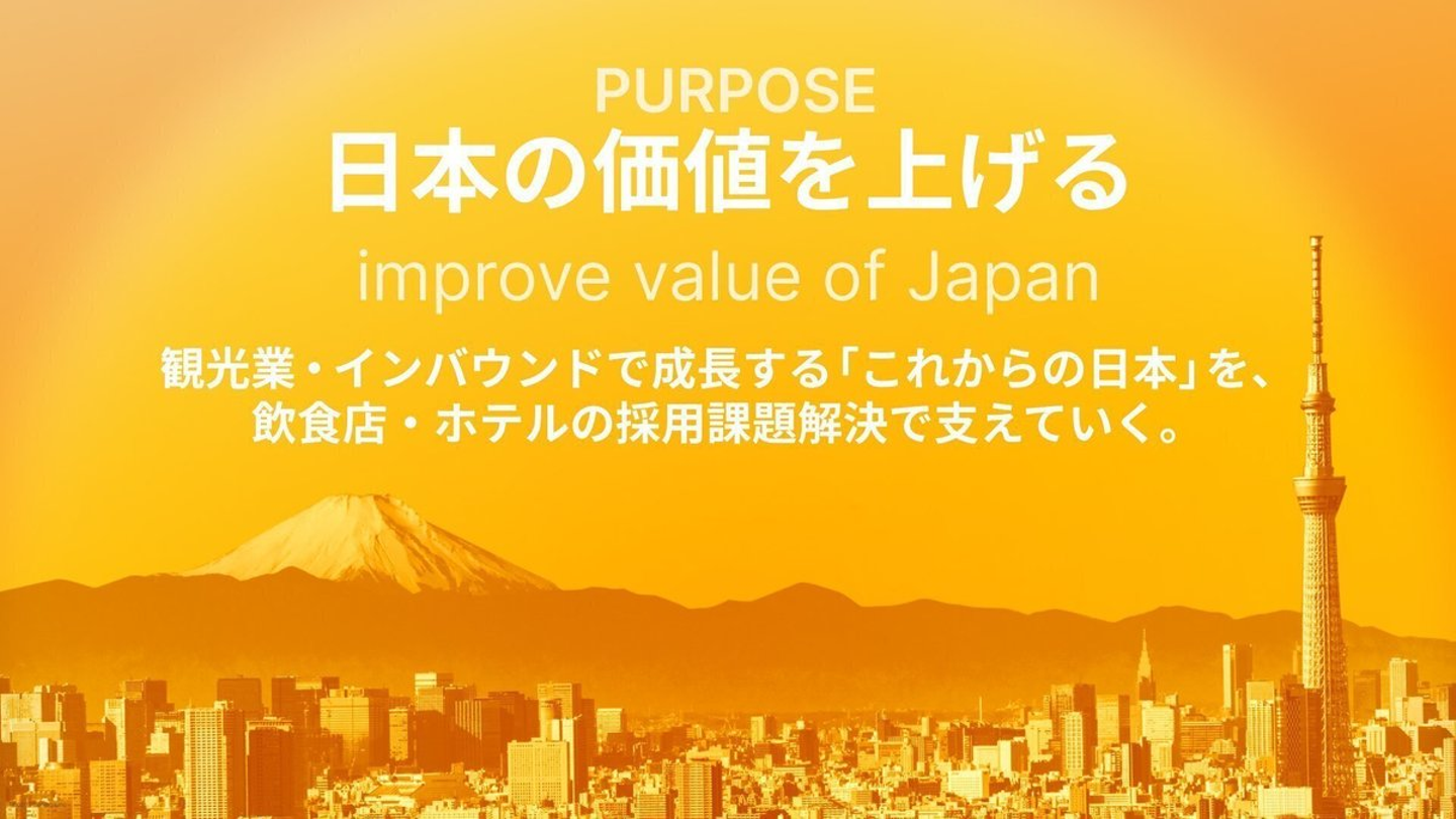 日本には素晴らしい食文化があり、世界に誇れるホスピタリティがある。その価値を最大化し、日本の成長産業を人材面から支えることで、この国の未来に貢献したい。そう本気で思っています。