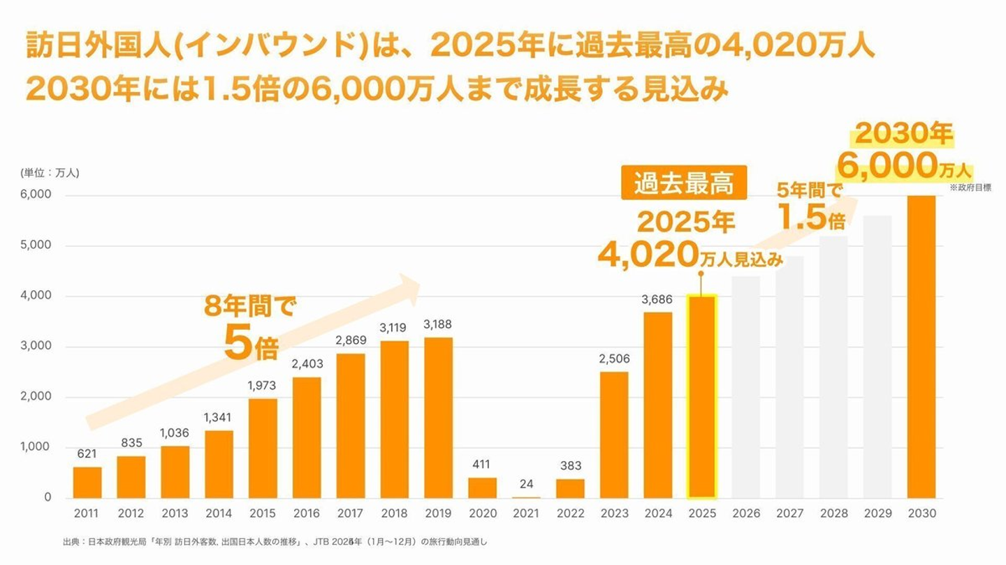 少子高齢化により国内市場は縮小し、多くの産業が成熟化していく。その中で、インバウンド需要は日本が確実に成長できる数少ない領域です。そして、その成長を最もダイレクトに取り込める産業が、飲食・ホテル業界なんです。