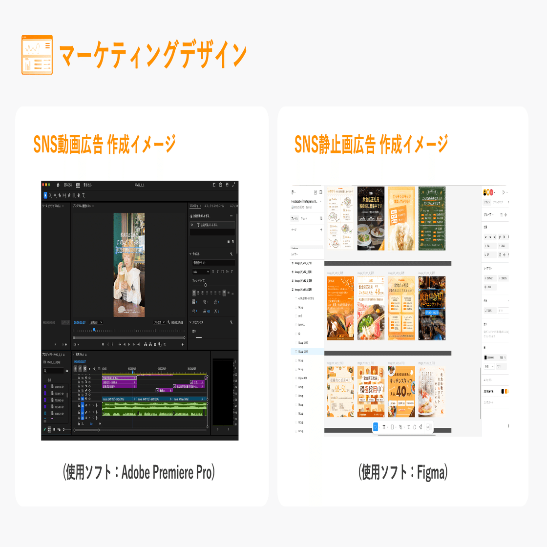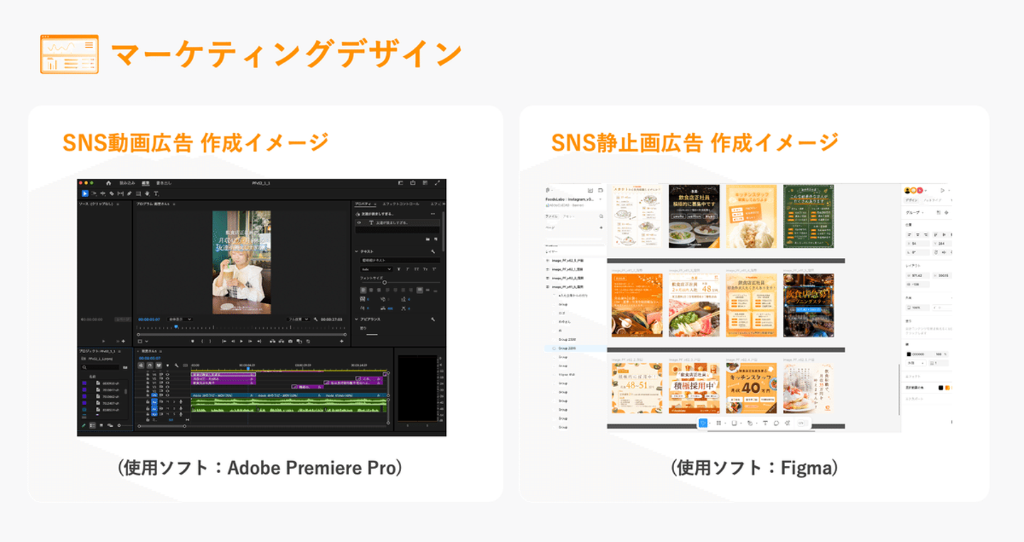 田口:マーケティングデザインは、Google広告、Instagram広告、TikTok広告、各広告チャネルで用いるLPなど、広告クリエイティブの企画・制作・改善・運用を担当します。