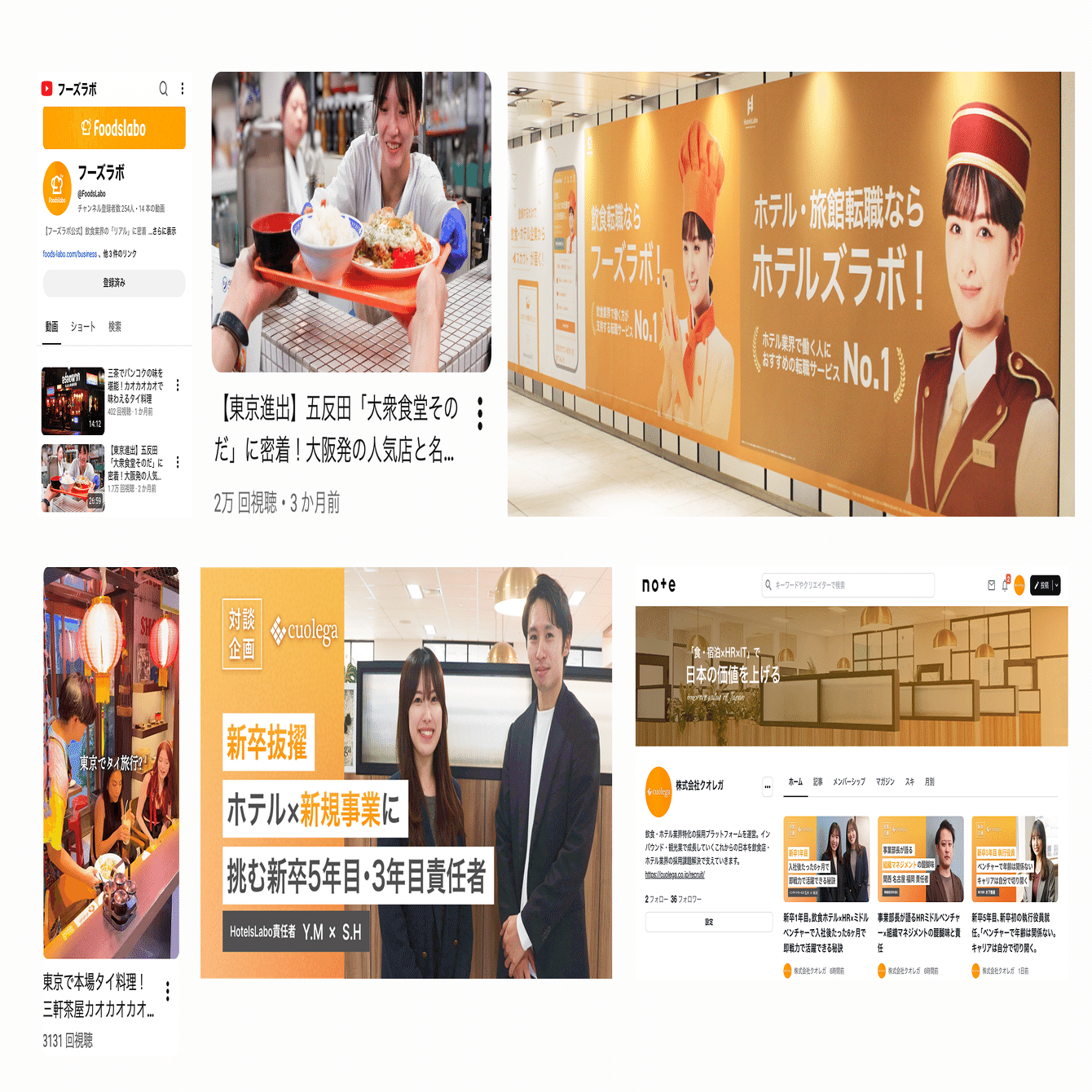 クオレガでは飲食人材特化の採用プラットフォーム「FoodsLabo」、ホテル人材特化の採用プラットフォーム「HotelsLabo」を運営しています。