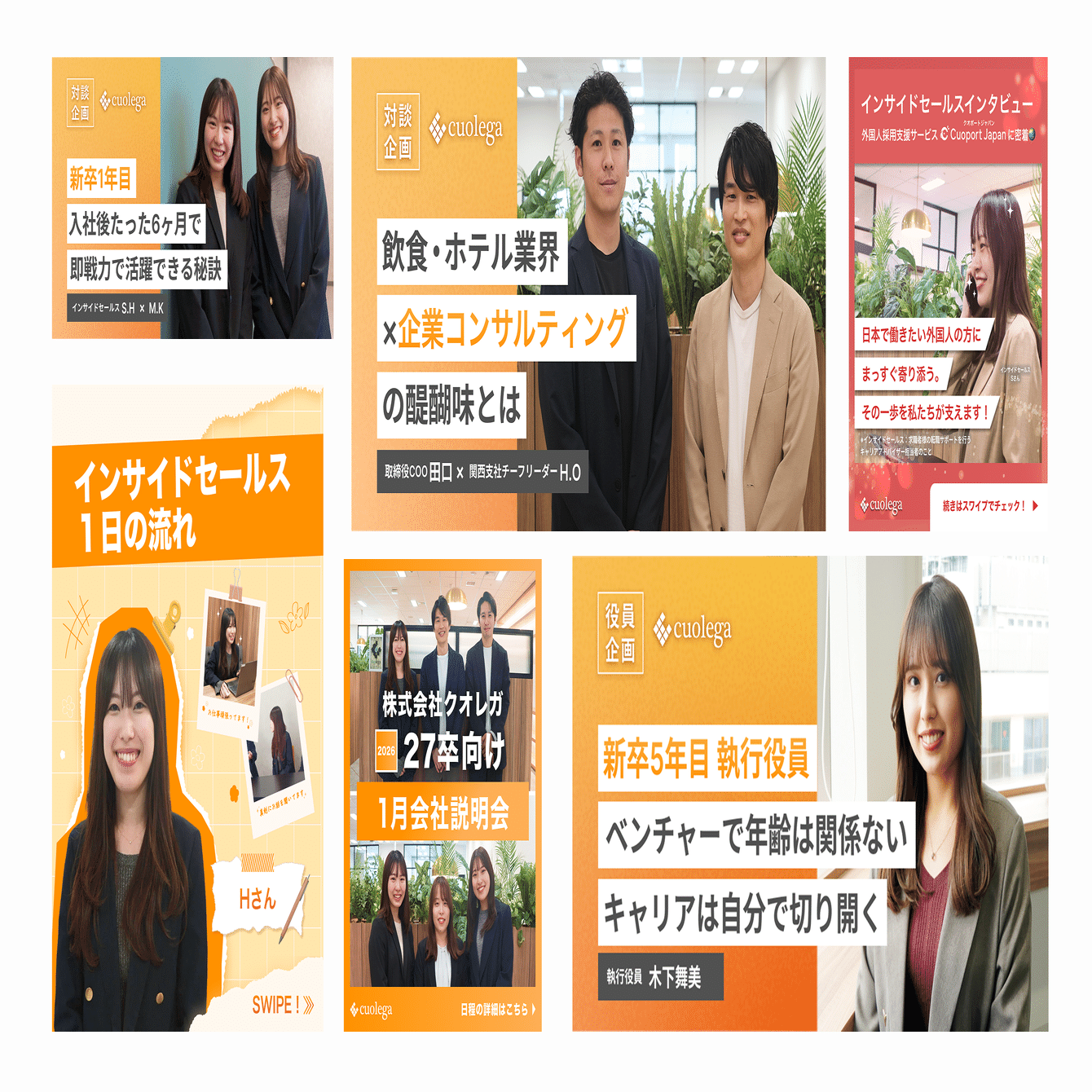そして、全員が成果の出るデザインにこだわる。「見た目が綺麗」だけじゃダメ。「このデザインで、CVが取れるか」「CPAを下げられるか」。常に数字と向き合っています。 これが、クオレガのマーケティングデザインです。