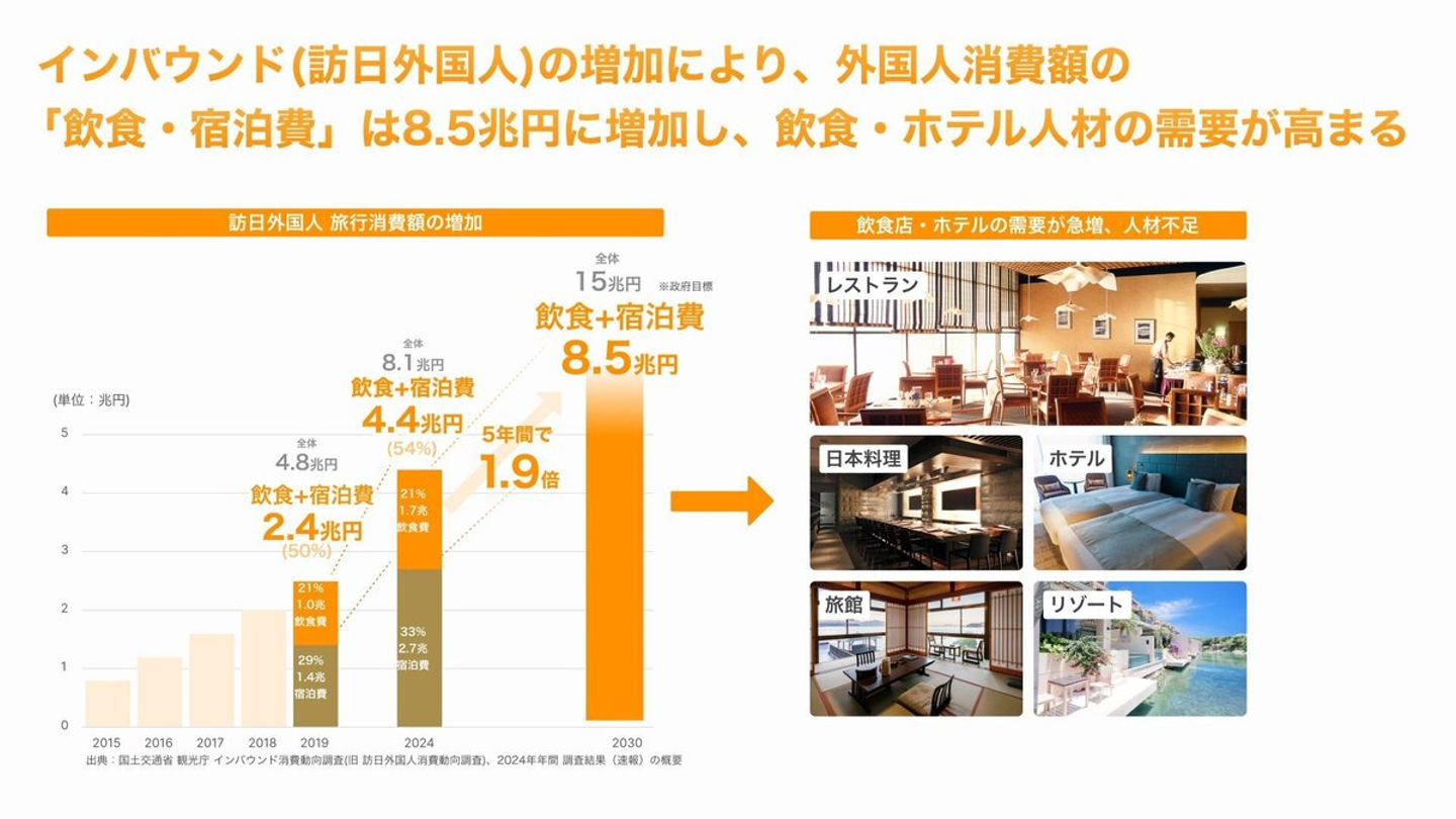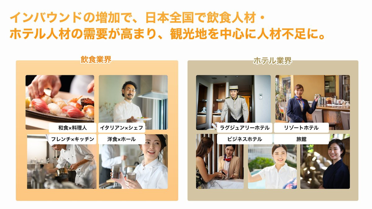 だからこそ、「インバウンドで成長する『これからの日本』を、飲食店・ホテルの採用課題解決で支える」べく、FoodsLabo、HotelsLaboを開発・運営しています。インバウンドの増加で、飲食ホテル人材の需要はさらに高まるので、日本の成長産業の採用課題を解決するのは、すごく社会的に意義のあることです。