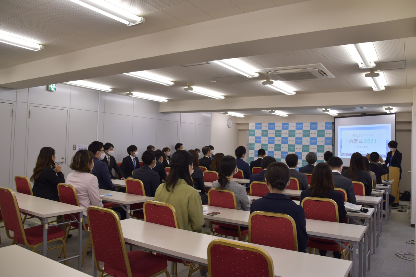 新卒4期生も社長から内定証書をもらい、今後の経営戦略なども聞いて大きな社会人の一歩ですね!