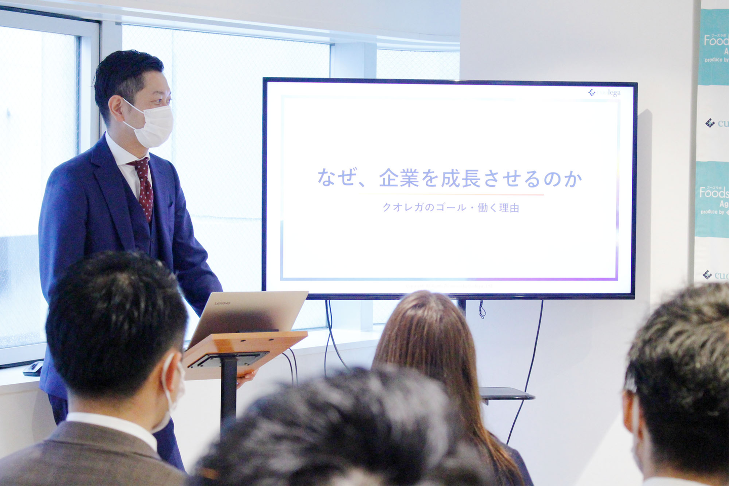 続いて代表より今後の戦略についてのお話、クオレガで働く意義をお話頂きました。