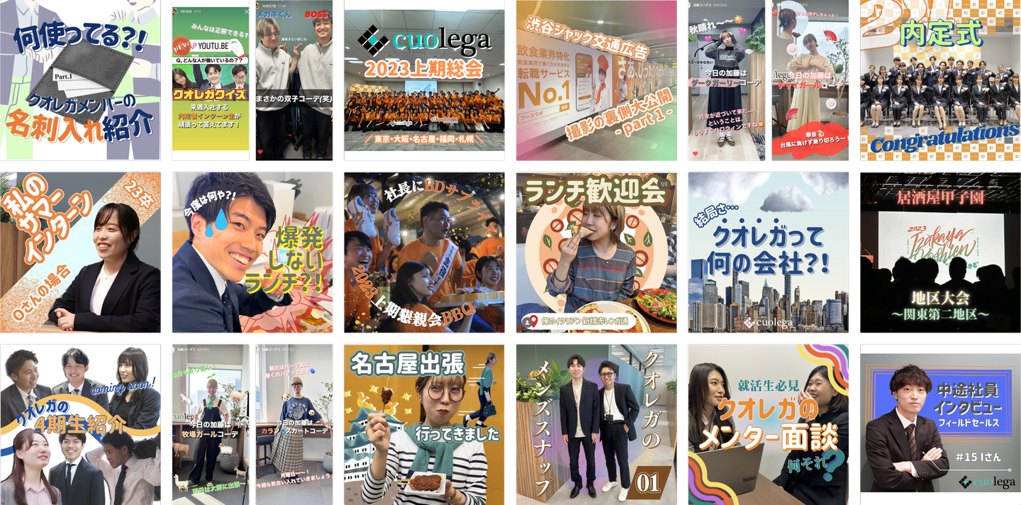 広報としては、主に新卒・中途向けにinstagramで毎日社内の様子を発信、YouTubeは自ら編集を行い、採用、PRに対して貢献できるよう動画を制作・公開しています。