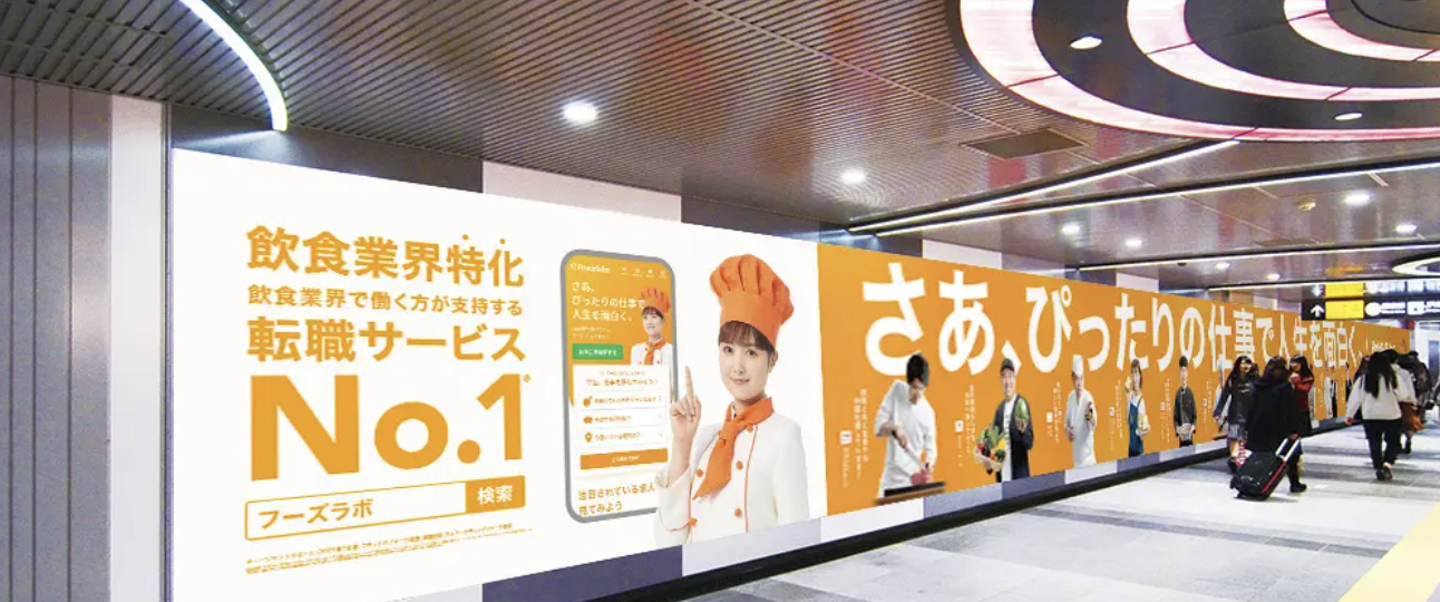 入社2年目の7月と9月には、渋谷駅をジャックする交通広告のPMも任せて頂き、「FoodsLabo」の認知度アップにも務めています。優秀なデザイナーが手掛けた広告は、社外からすごい反響だったんですよ!