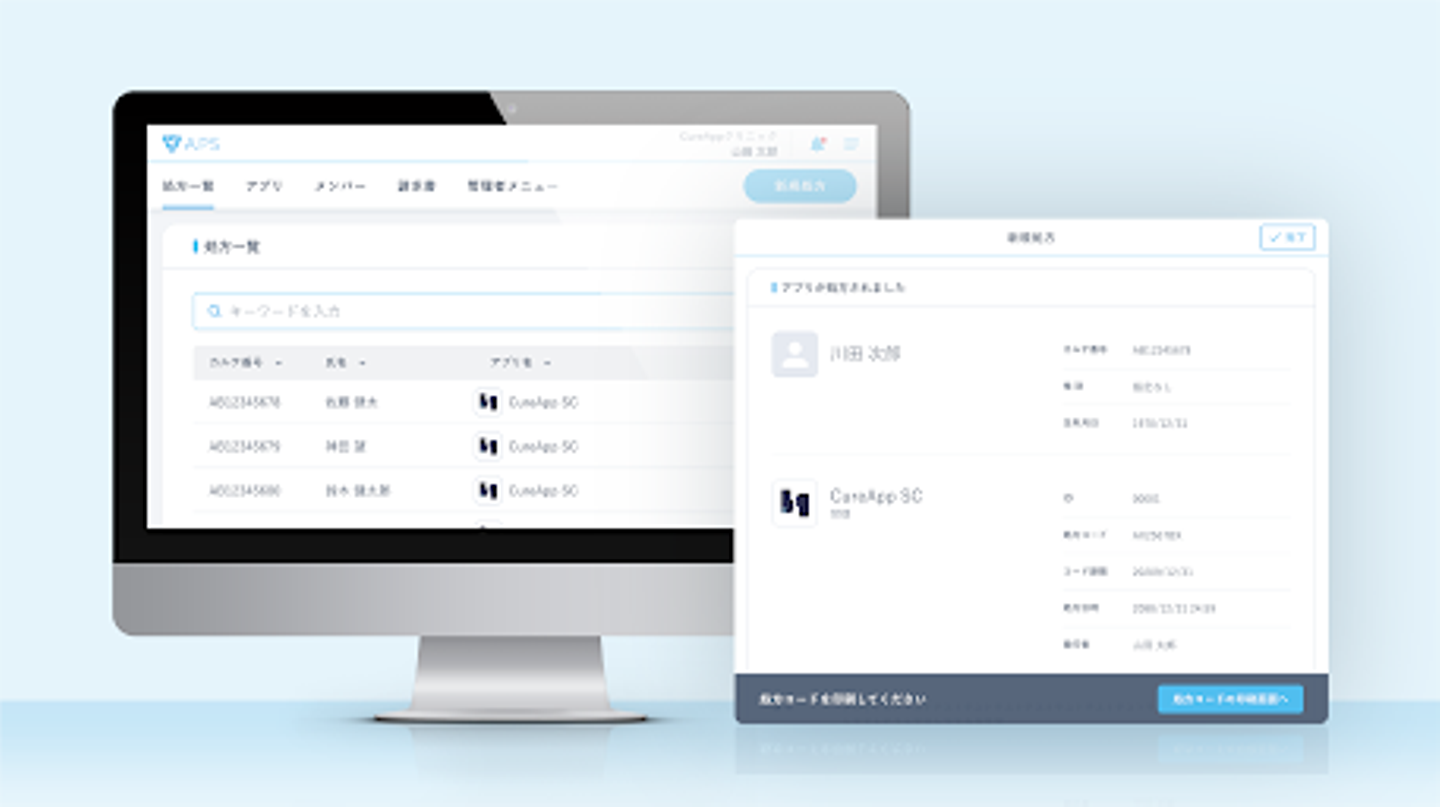 APSは、薬事承認取得済みの「CureApp SC ニコチン依存症治療アプリ及びCOチェッカー」(以下、CureApp SC)をはじめとする、今後国内で登場する治療用アプリの導入や処方・管理などをワンストップで行うためのサービスです。医療機関は契約や支払いなども本サービスを通して行えるため、治療用アプリに関する全ての業務がブラウザ上で完結します。