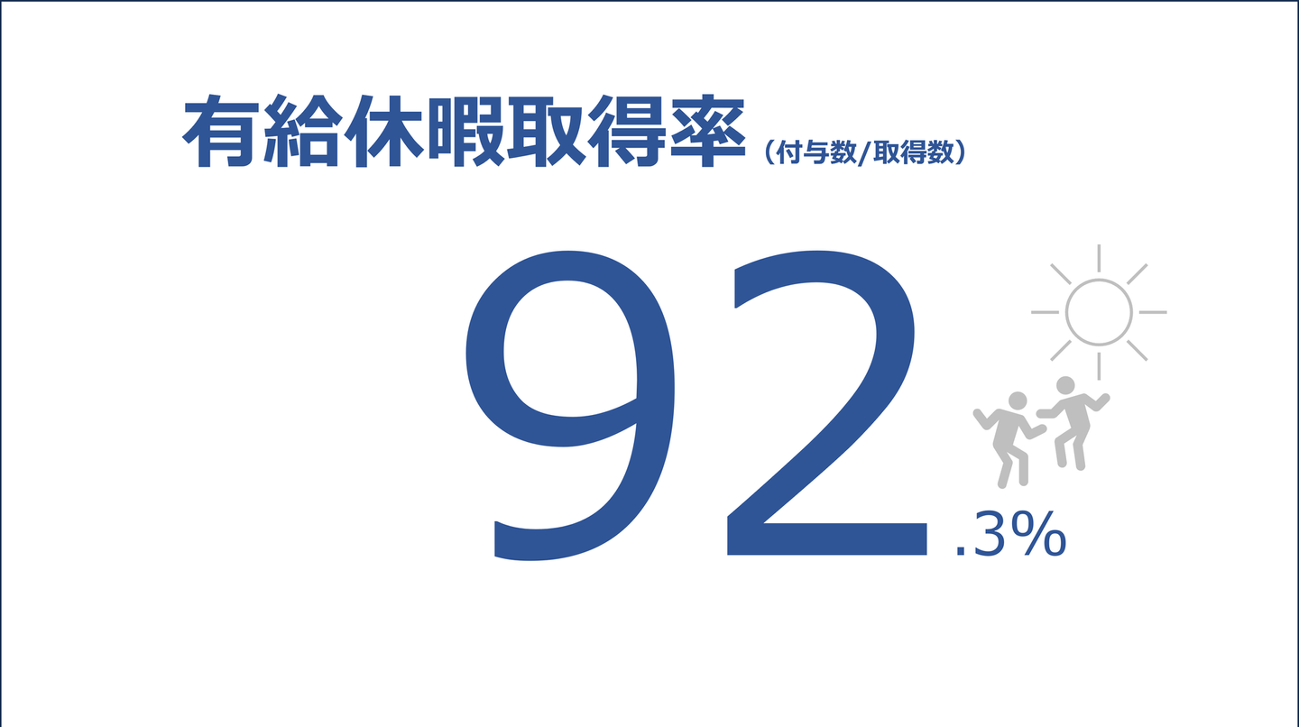 エンジニア職のみの取得率です。案件の進捗もありますが、WLBを整えながら働いていただいています。会社側から取得日の設定はしておりませんので、ご自身のスケジュールに合わせて取得していただけています。※有給取得日数 / (人数×有給付与数)で算出