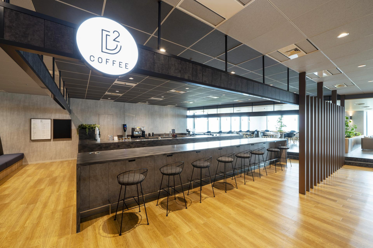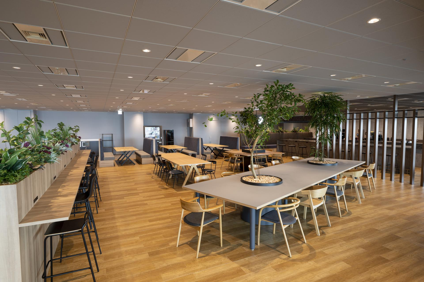 カフェのそばには、自由に使えるコワーキングスペースとラウンジスペースがあり、