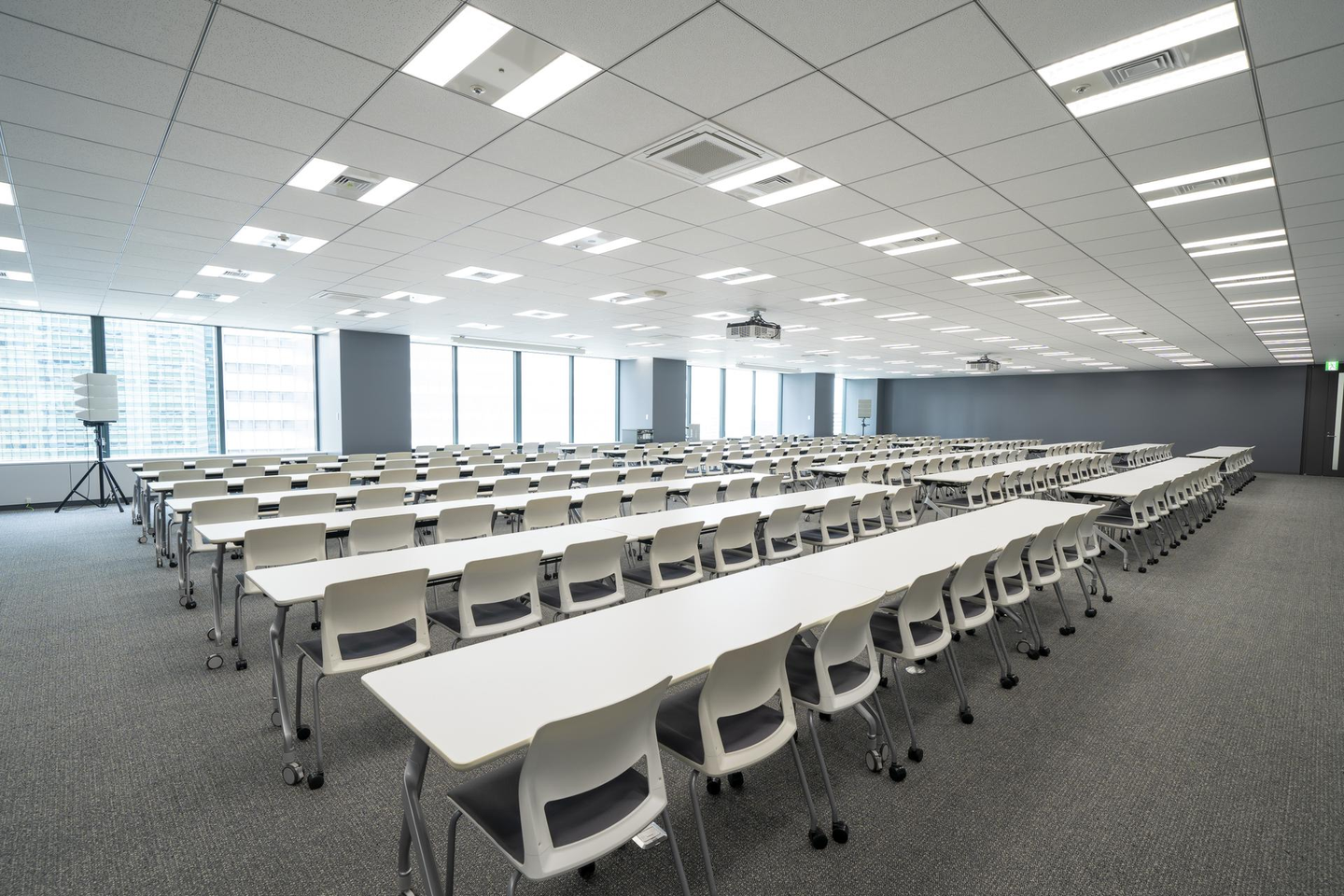 約250人収容可能なセミナールームも完備しています。生配信などもできるため社内イベントに大活躍!