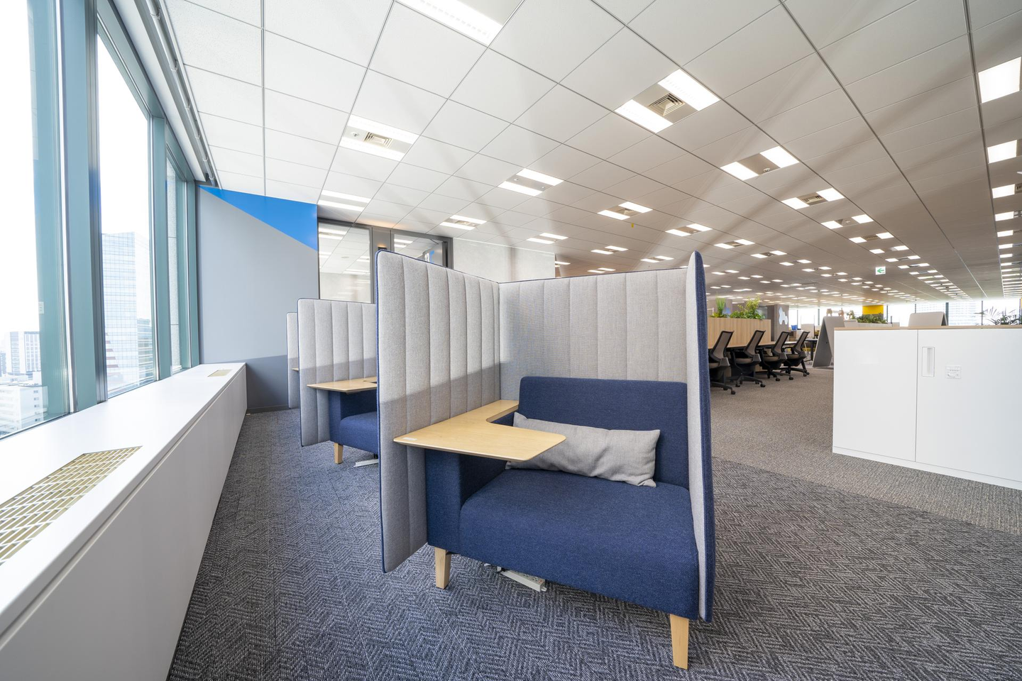 チームメンバーと近くに座ることが多いですが、その日の業務内容や気分に応じて座る席を変えることができるので、効率よく仕事を進めることができます。