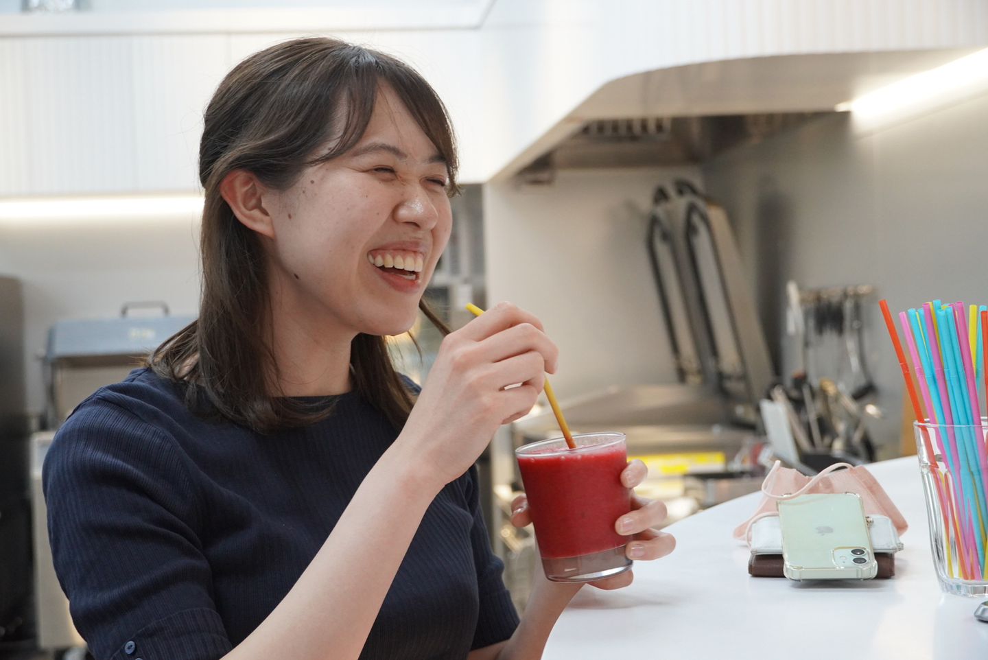 平日は朝5時ごろに起床。身支度したあと、冷凍庫にストックしているフルーツ(休日にカットして冷凍しておいたもの)を使った、手作りスムージーを朝食に飲むのが日課です!デイブレイクで食に携わるようになってから、自分の食生活も意識するようになりました。