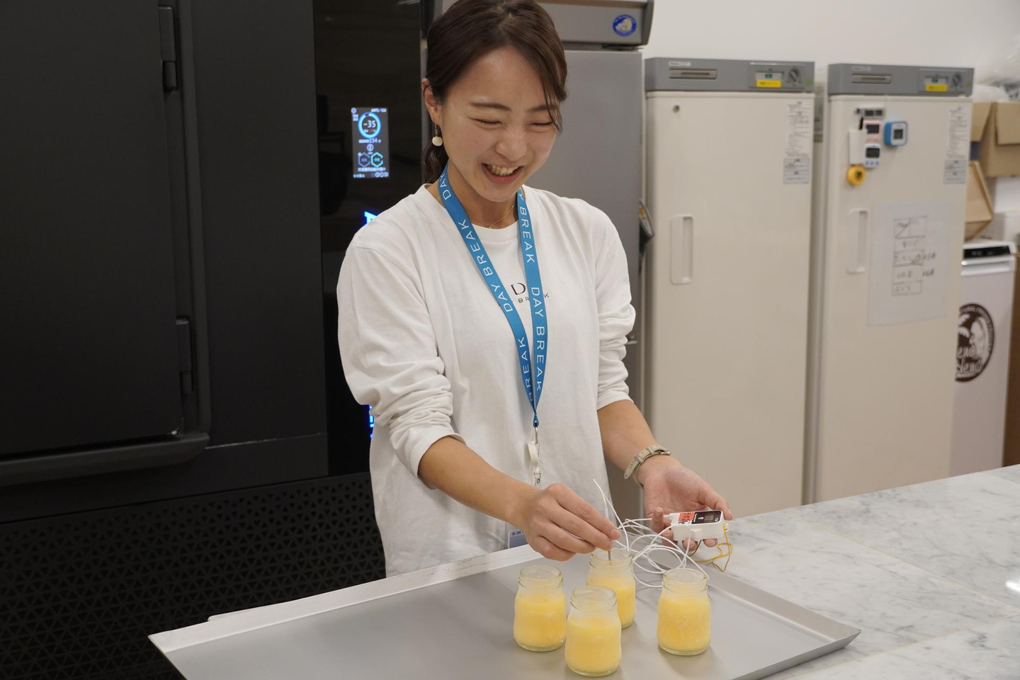 「とある食品にまつわる依頼を受け、冷凍する温度や環境、解凍時間とさまざまな要素を変え、どれが最も美味しくできるかを検証しました。提案までの締切が短く、テストに不可欠な『凍結の時間』は短縮ができない中、他を効率化しながら最小限の時間で最大限の検証をすべく、考え抜きました。その結果、競合に勝って受注をいただきました。ラボの研究があったからデイブレイクに決めたと聞いたときは、セールス担当の子と抱き合って泣きましたね。ラボ×セールスの事例をもっと作っていきたいです」