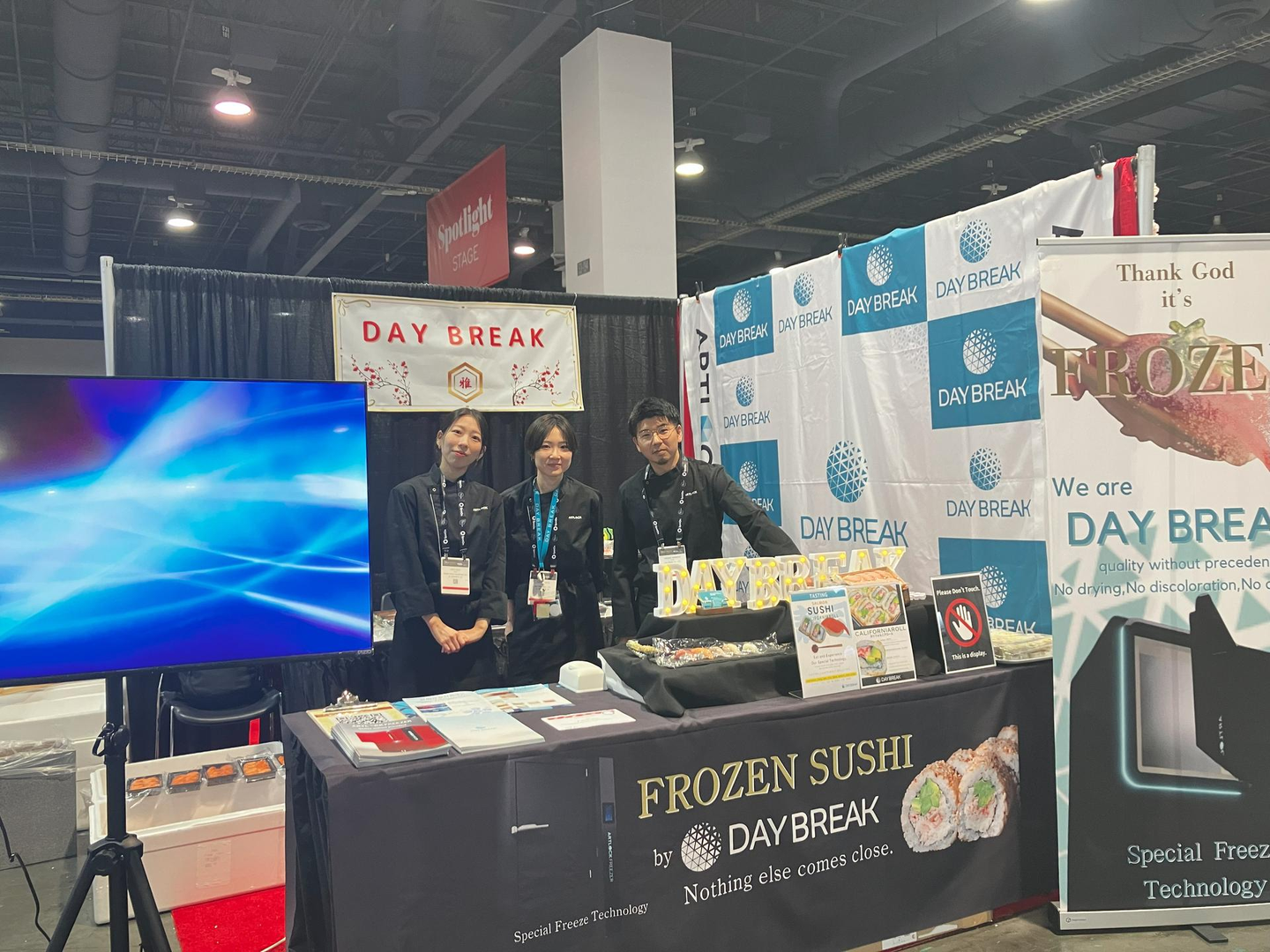 デイブレイクは、2025年3月と4月に、アメリカ・ラスベガスおよびドイツ・ハンブルクで開催された国際展示会に出展し、冷凍寿司を披露しました。
