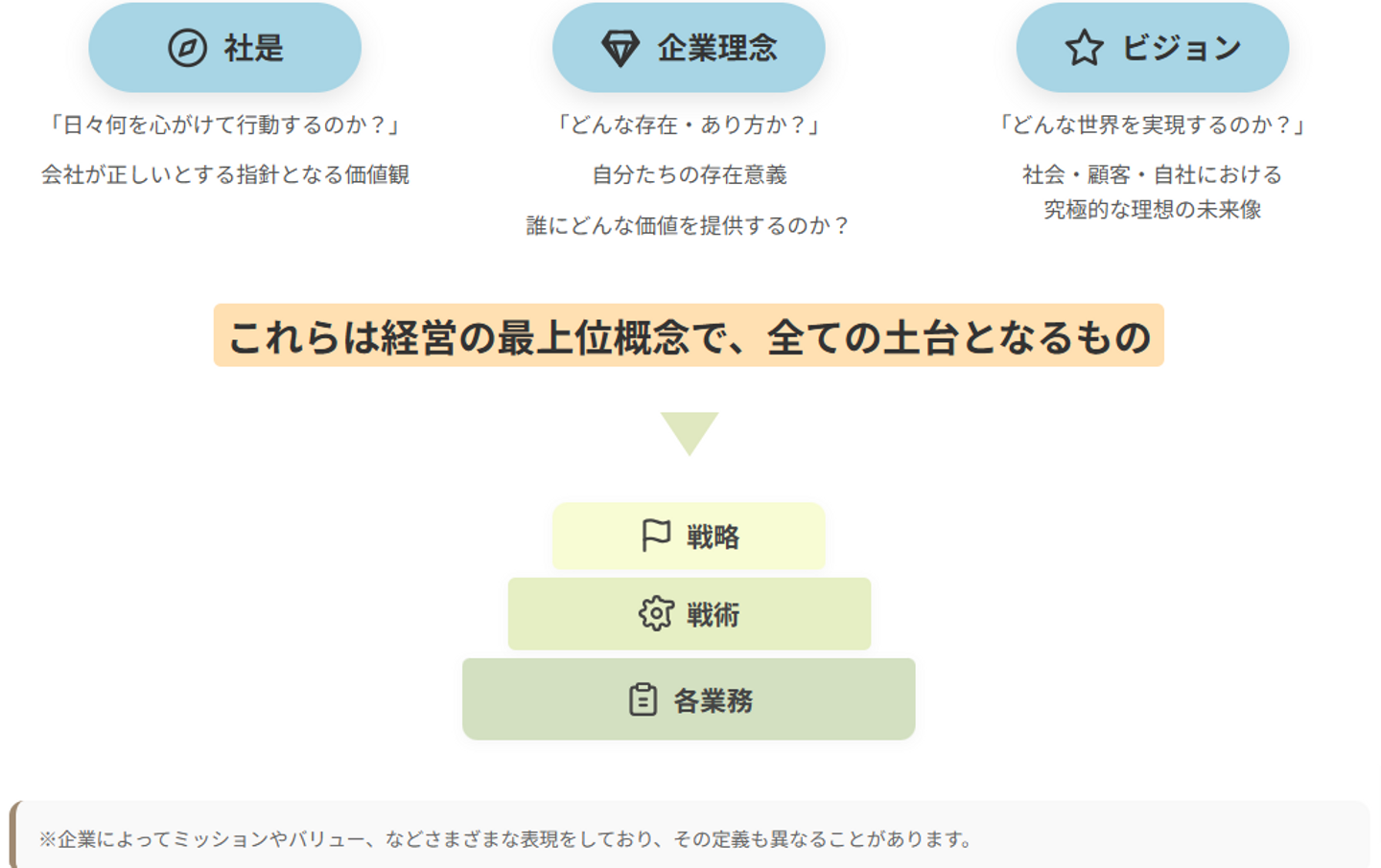 そして、これら全ての土台となるのが、「企業理念」です。