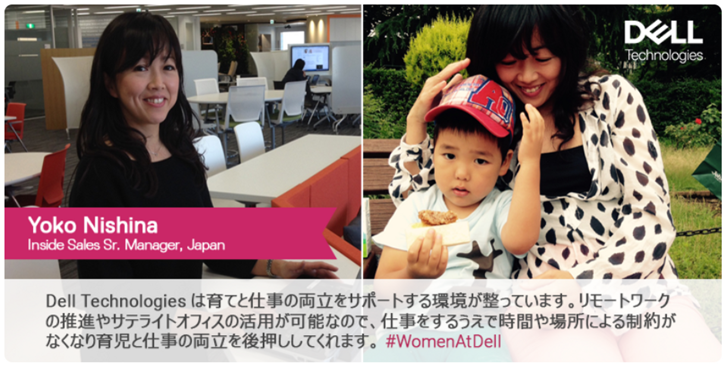 2020年8月に新生したデル・テクノロジーズ株式会社(以降、デル)は、現在ダイバーシティ―採用に力をいれており、その一つとして「2030年までに社員の男女比を1:1にする」という目標を掲げています。まずは社員が働きやすい環境を提供すべく、仕事とプライベートのバランスを上手くアレンジできる制度を今まで以上に充実させました。