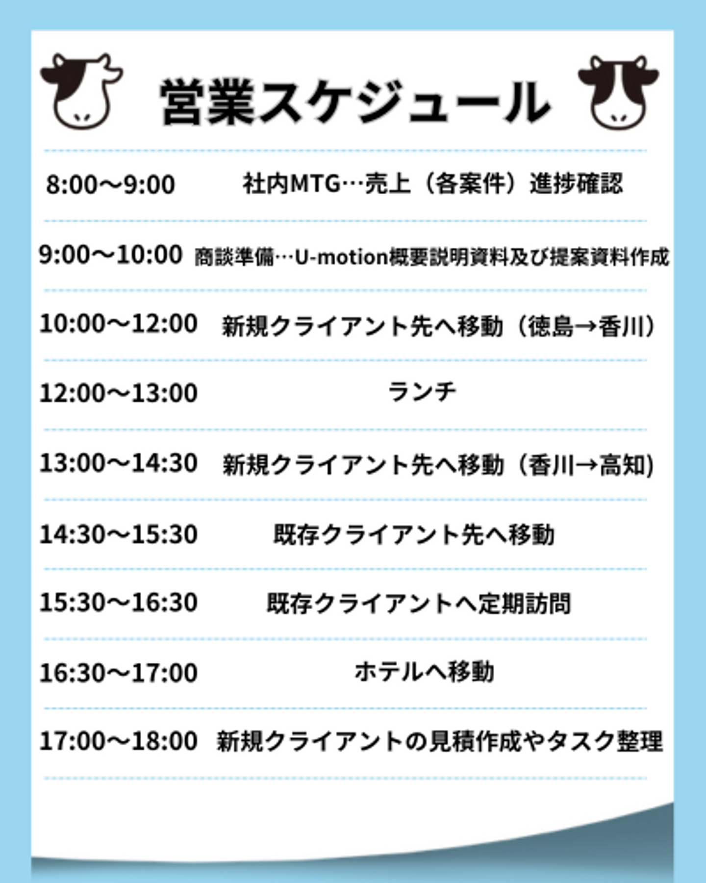 普段どんな風に仕事をしているのか、営業の1日を覗いてみましょう!
