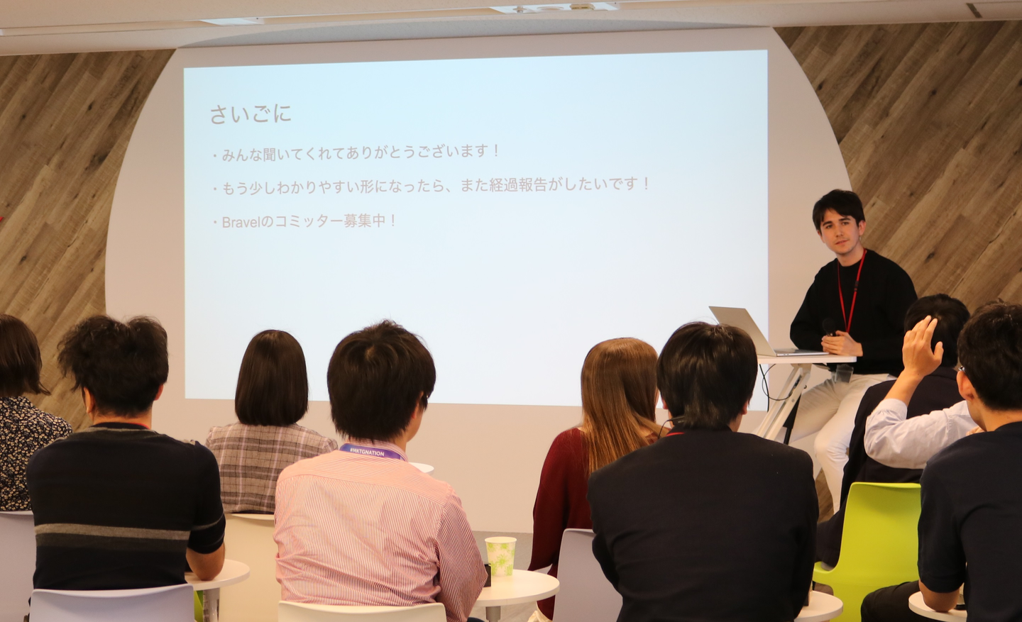 西川さん 残念ながら...。笑 始まったきっかけとしては、外部からの情報収集や新規技術を共有する場を作りたい、だったり、プライベートで取り組んでいる技術的なことの成果発表の場になれば良いなという思いでスタートしたと聞いています。ただ、3ヶ月くらい開催されない時期があったので、「あれどうなったんですか?」と当時の上司に軽く聞いたところ、「西川くんやってみれば?」と言われ、、、僕がやることになりました。