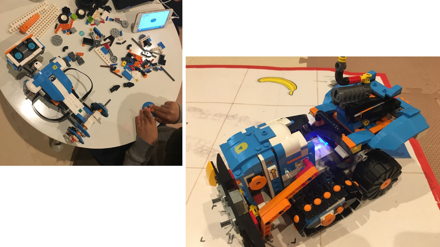 なんでも、LEGO Boostという遊びながらプログラミングを学べてしまうレゴがあるらしく。5歳のお子さんが作ったレゴの写真を見せてくれました!組み立てたものを専用アプリで動かすことができるそうです。