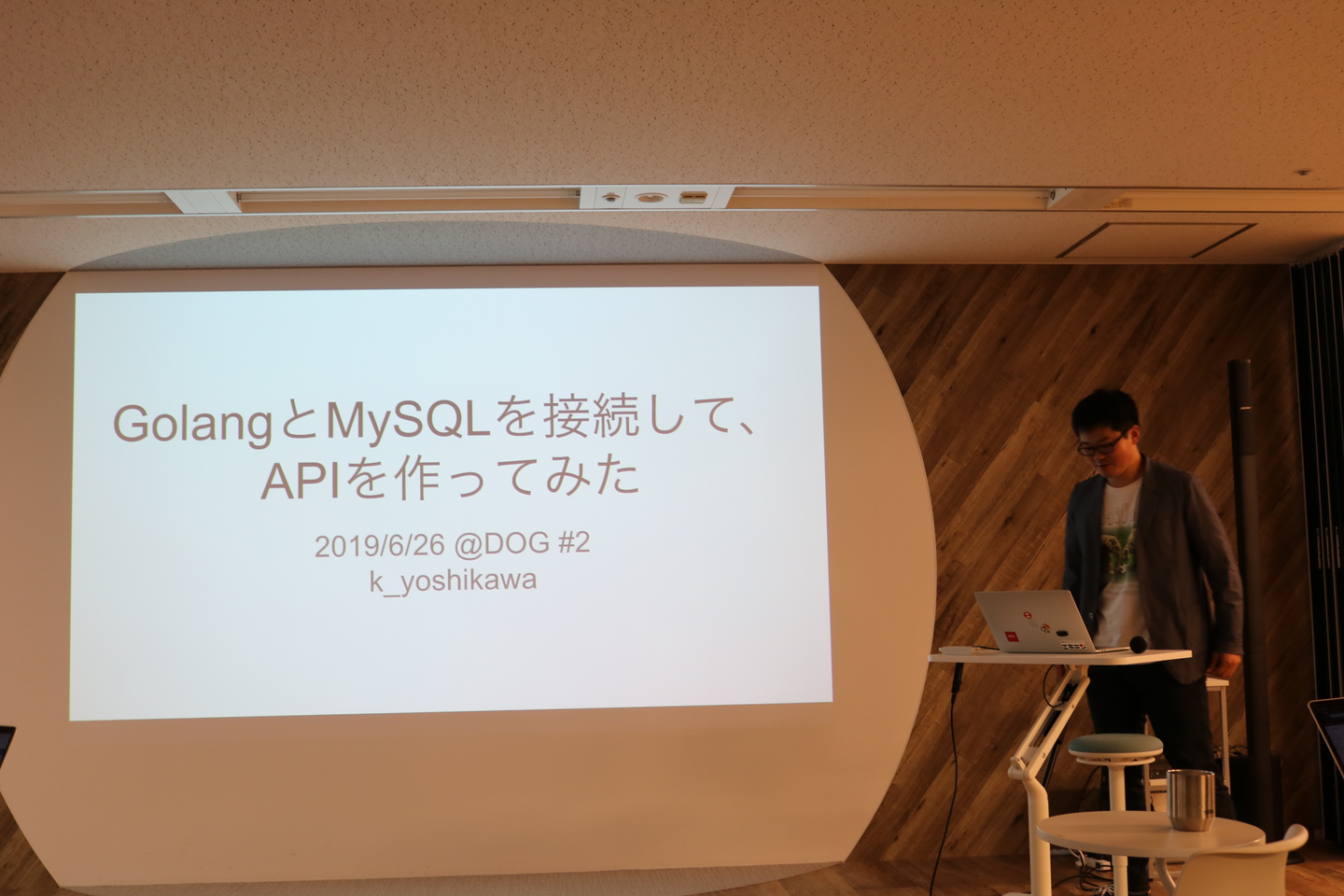 最初の登壇者は、k_yoshikawaさん、「GolangとMySQLを接続して、APIを作ってみた」という内容で発表いただきました!