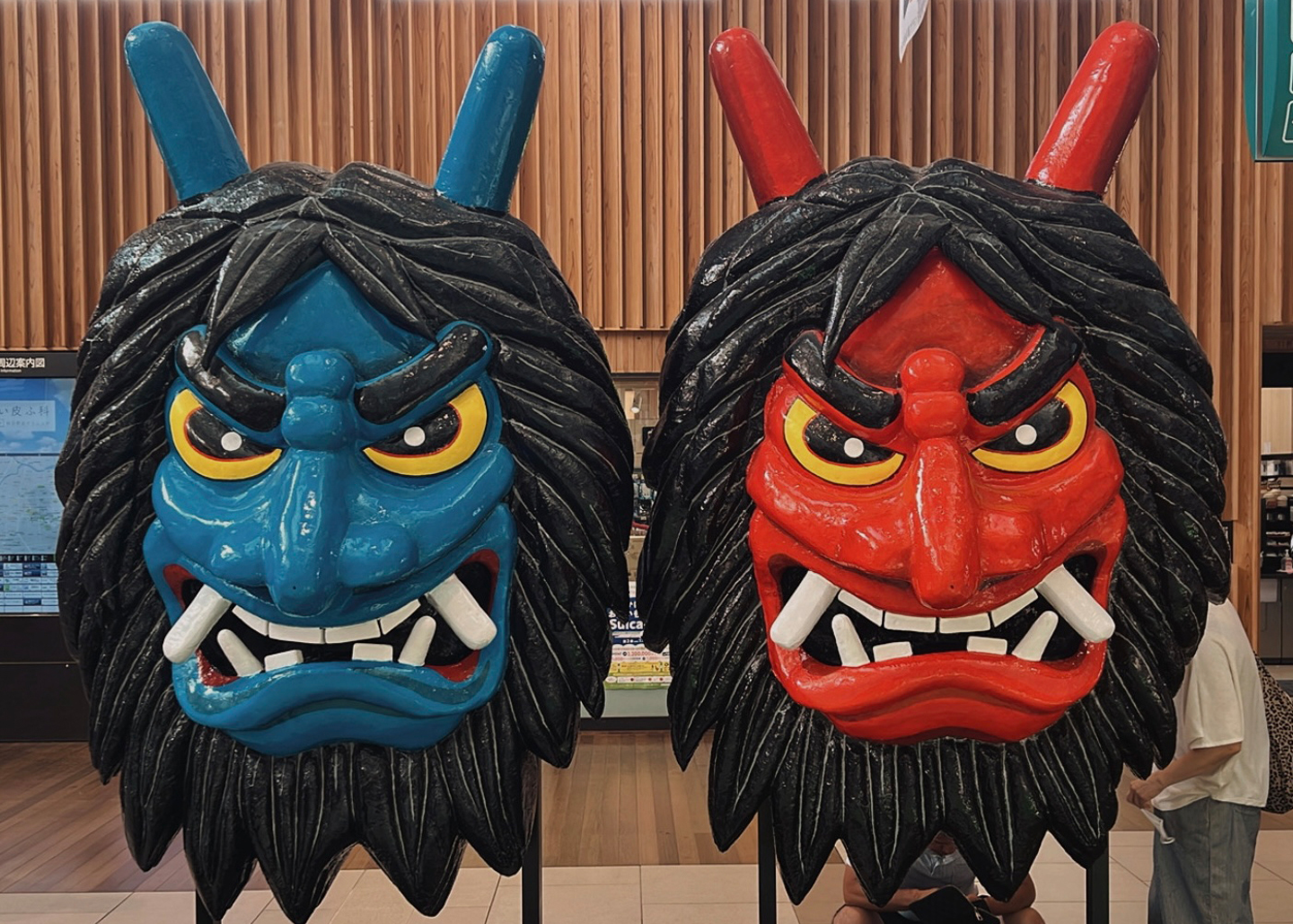 秋田駅に到着すると目の前に、「泣く子はいねが〜!」と言わんばかりのなまはげがどーん!