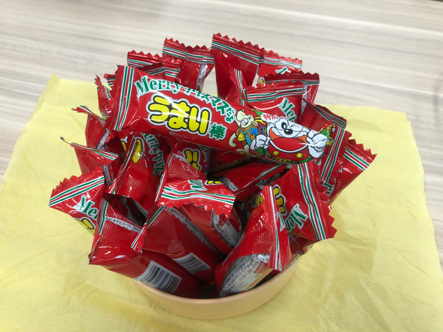 うちの部署の机にはいつもうまい棒があるんですが、ふと気が付いたらこんなものが・・・。