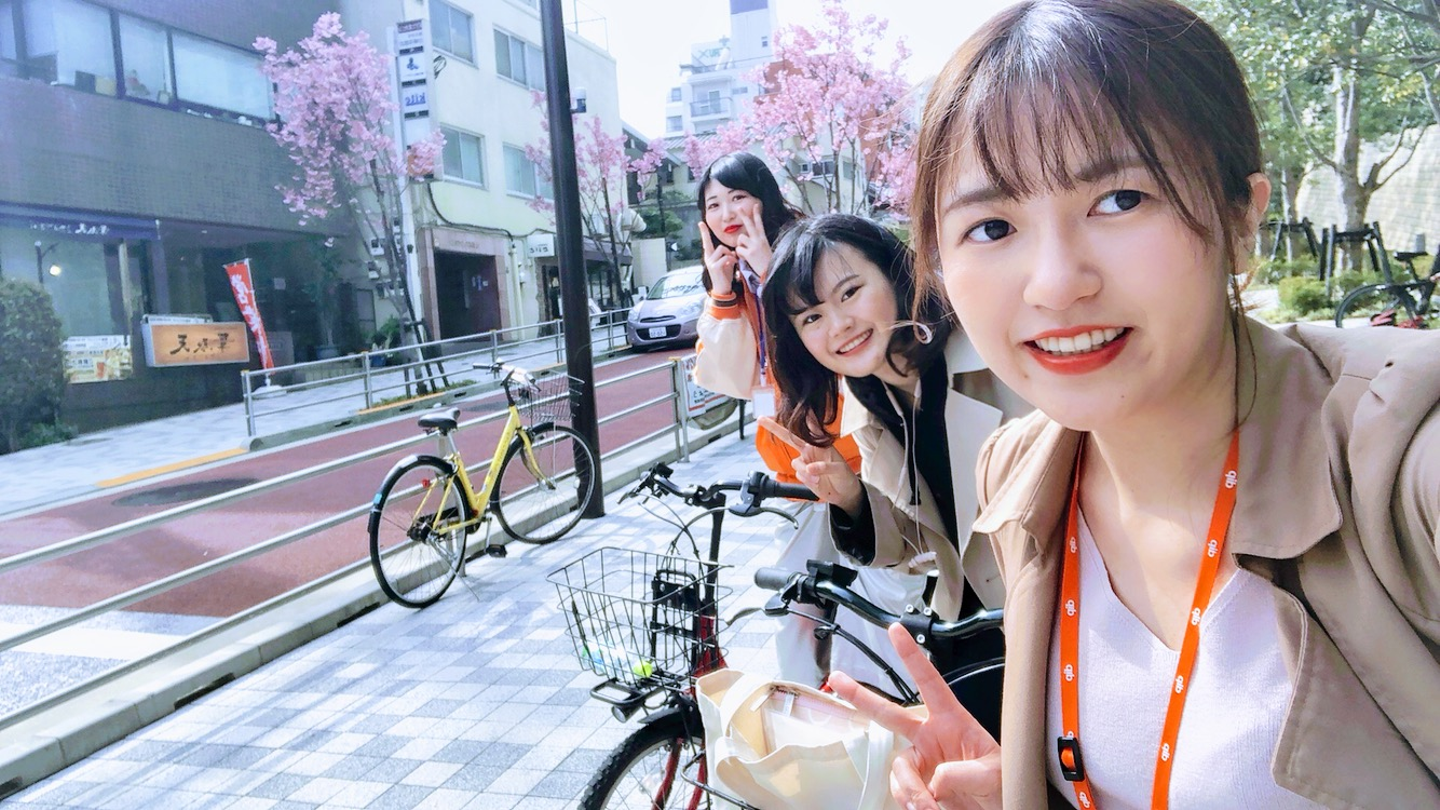 手前に写っているキミさんは、この日のために先週横浜で自転車の自主練習をしたそうです。インターンがきっかけで、自転車のスキルも身につきました。