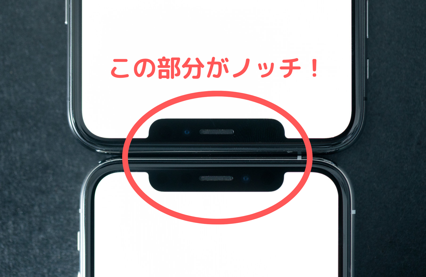 スマホにインカメやマイクが付いている部分がありますよね。あの部分をノッチっていうんですけど、あれが画面上にないのがノッチレスってやつですね。