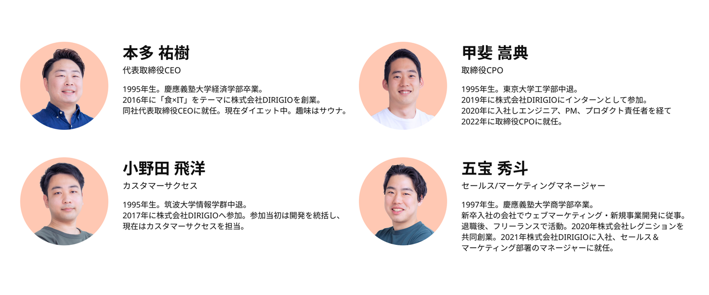 今回、DIRIGIOを経営する創業者とマネージャーの4人に「DIRIGIOの組織」について、