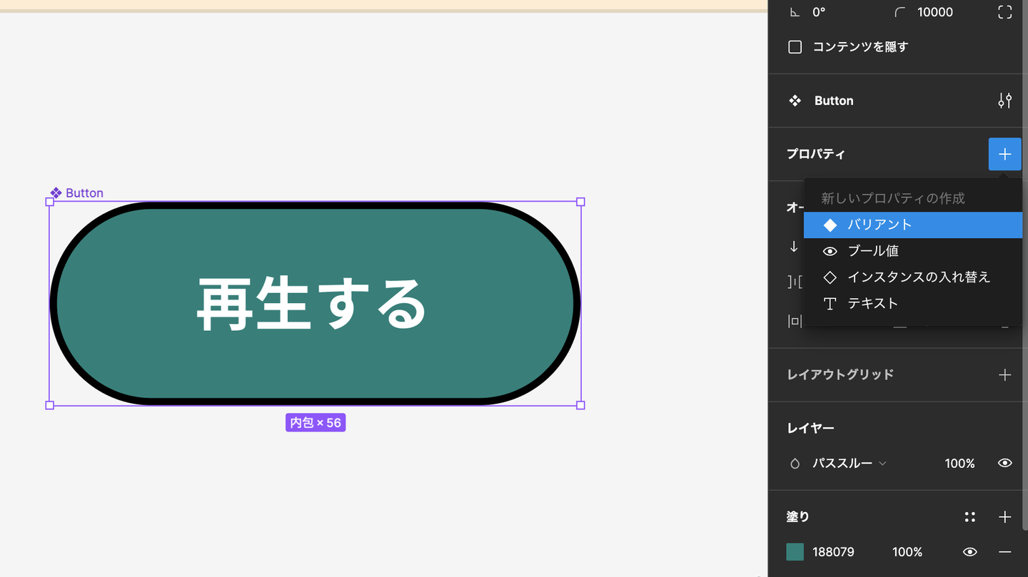 コンポーネントを選択→プロパティパネルのプロパティ→バリアントを選択。