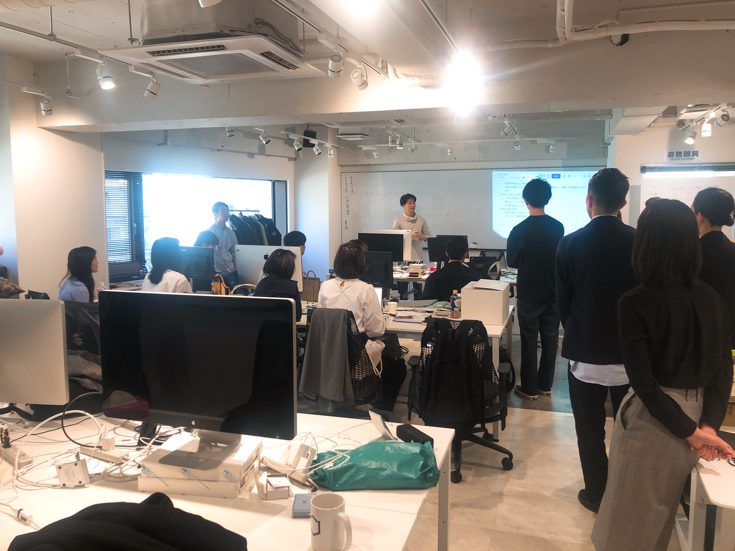 こちらも同じ日のオフィスでの写真。設立日にも関わらず、人数は30人近い。