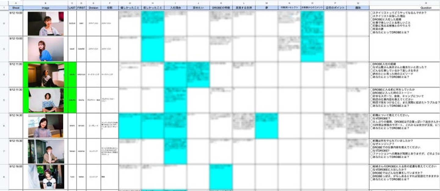 わたしもほとんどのインタビューは同席して、「みんなめっちゃいいこと言うじゃん…」と思って聞いていました。話を聞いたDROBEメンバーは総勢26人。のべ10数時間に及びます。これを数分のムービーにまとめる・・・?一体どこをどう使うんだろうと思って眺めていました。